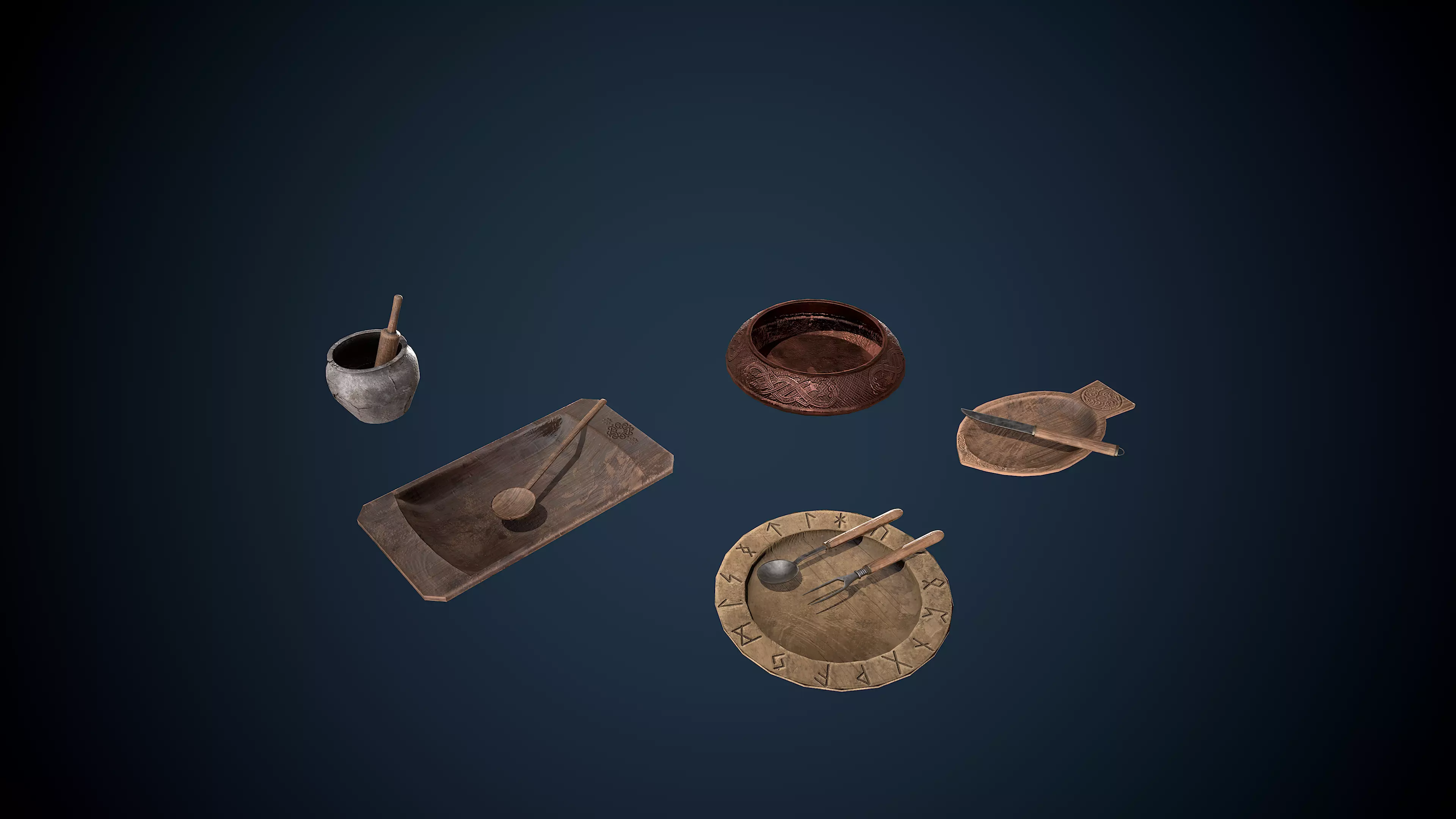Viking Drinking Items, game-ready and optimized, PBR materials used, the pack includes UE4 project, fbx, PBR / Unreal Engine / Unity Textures, so you can easily use these models in any software you want. It includes 8 meshes.