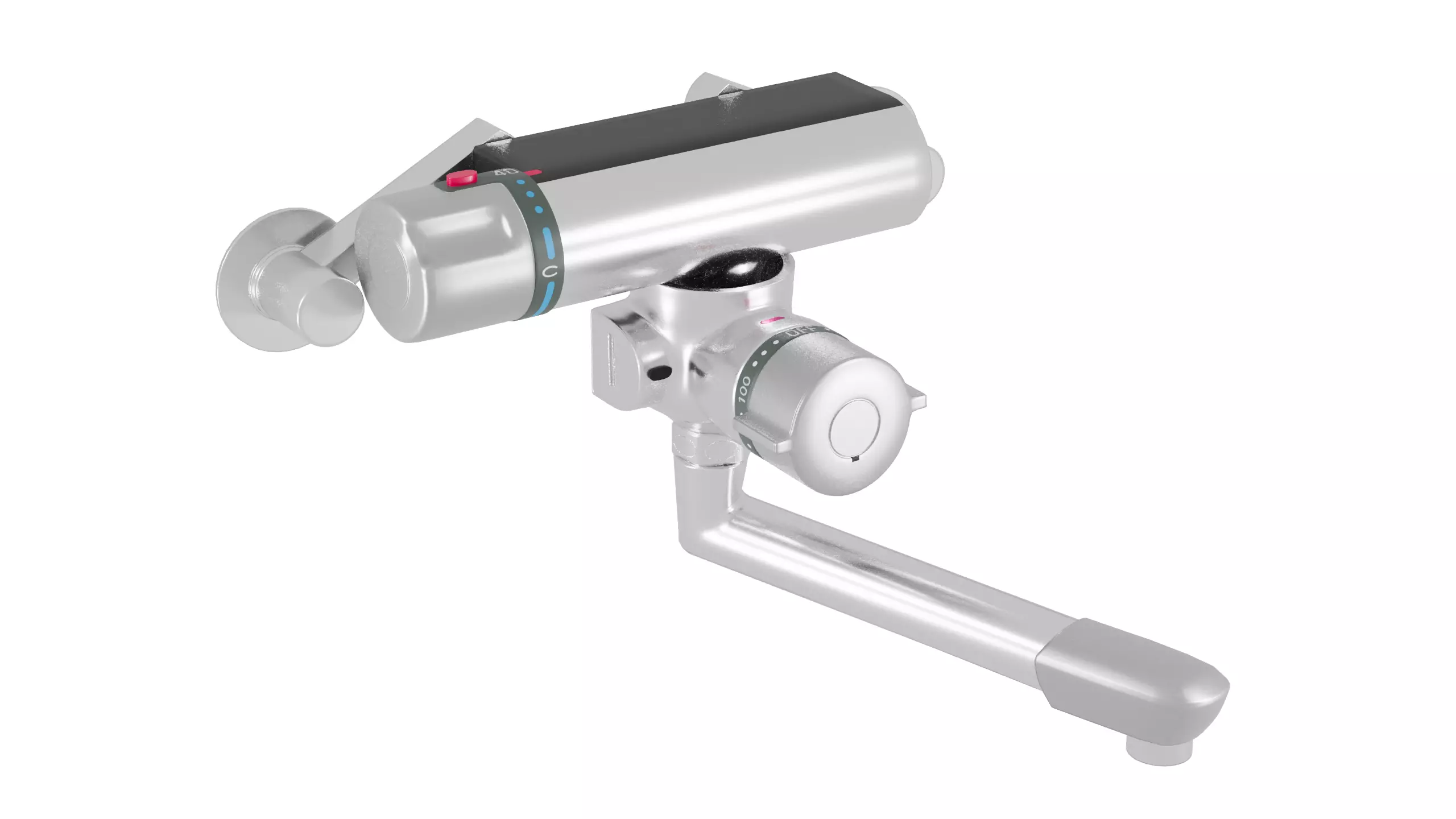 This Thermostatic Water Tap 3D Model is a highly detailed and realistic faucet asset designed for architectural visualization, kitchen/bathroom interior scenes, product rendering, and animation.The model features a sleek stainless-steel body, dual control knobs for temperature and water flow, and a clean, modern spout design.