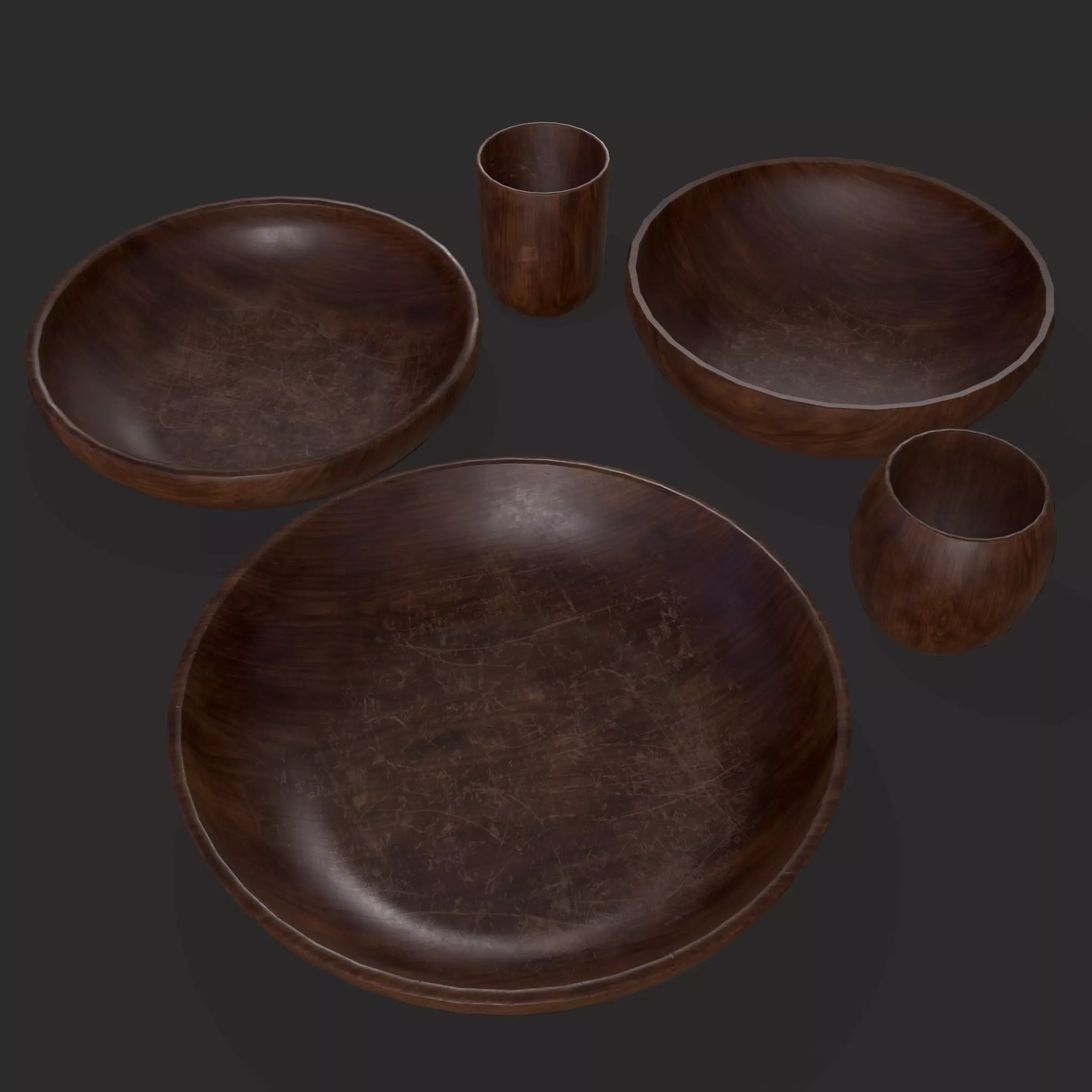 Worn Wood Bowls Low-poly 3D model