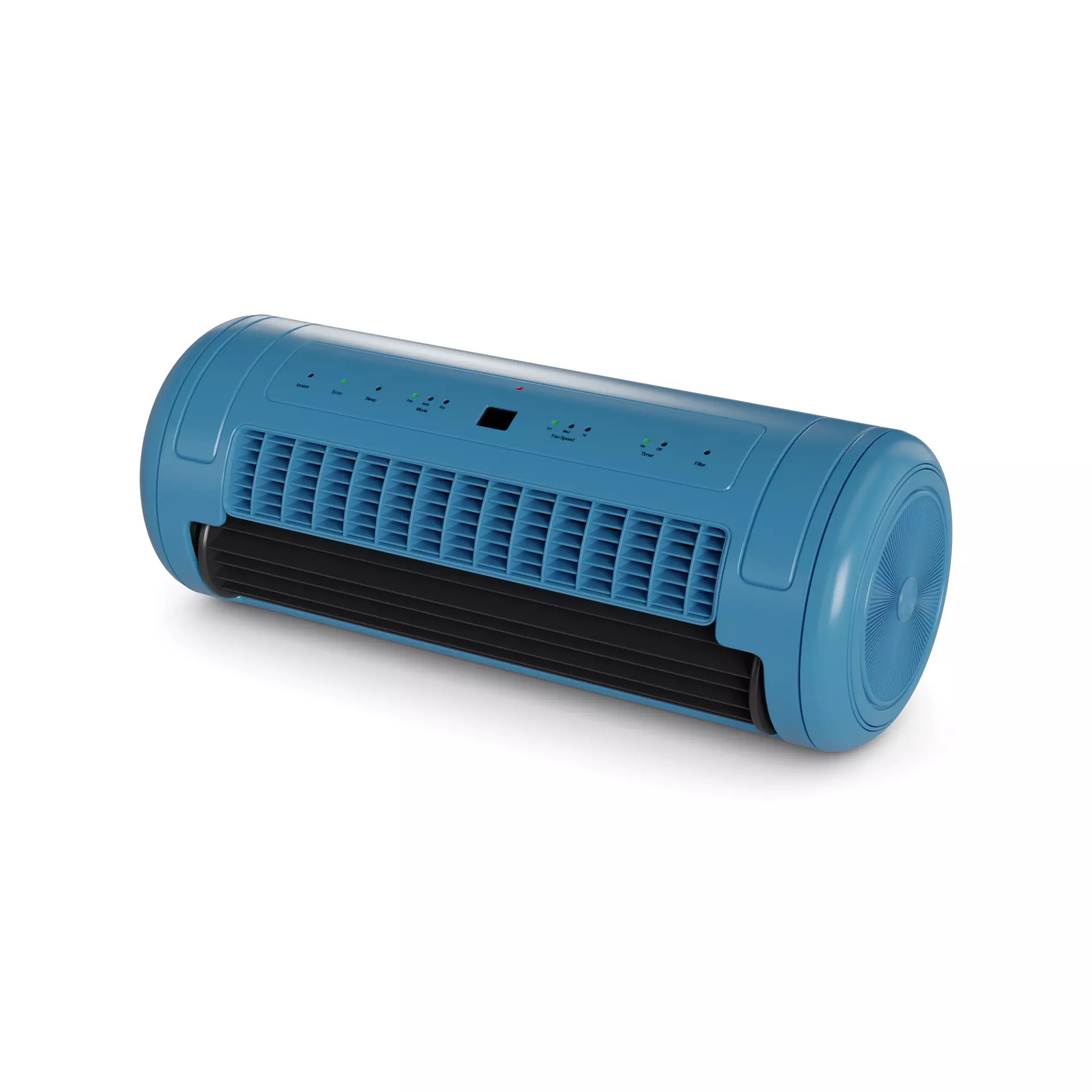 A futuristic-looking air conditioner in a metallic blue hue, designed with advanced cooling technology and a self-cleaning feature for hassle-free maintenance.