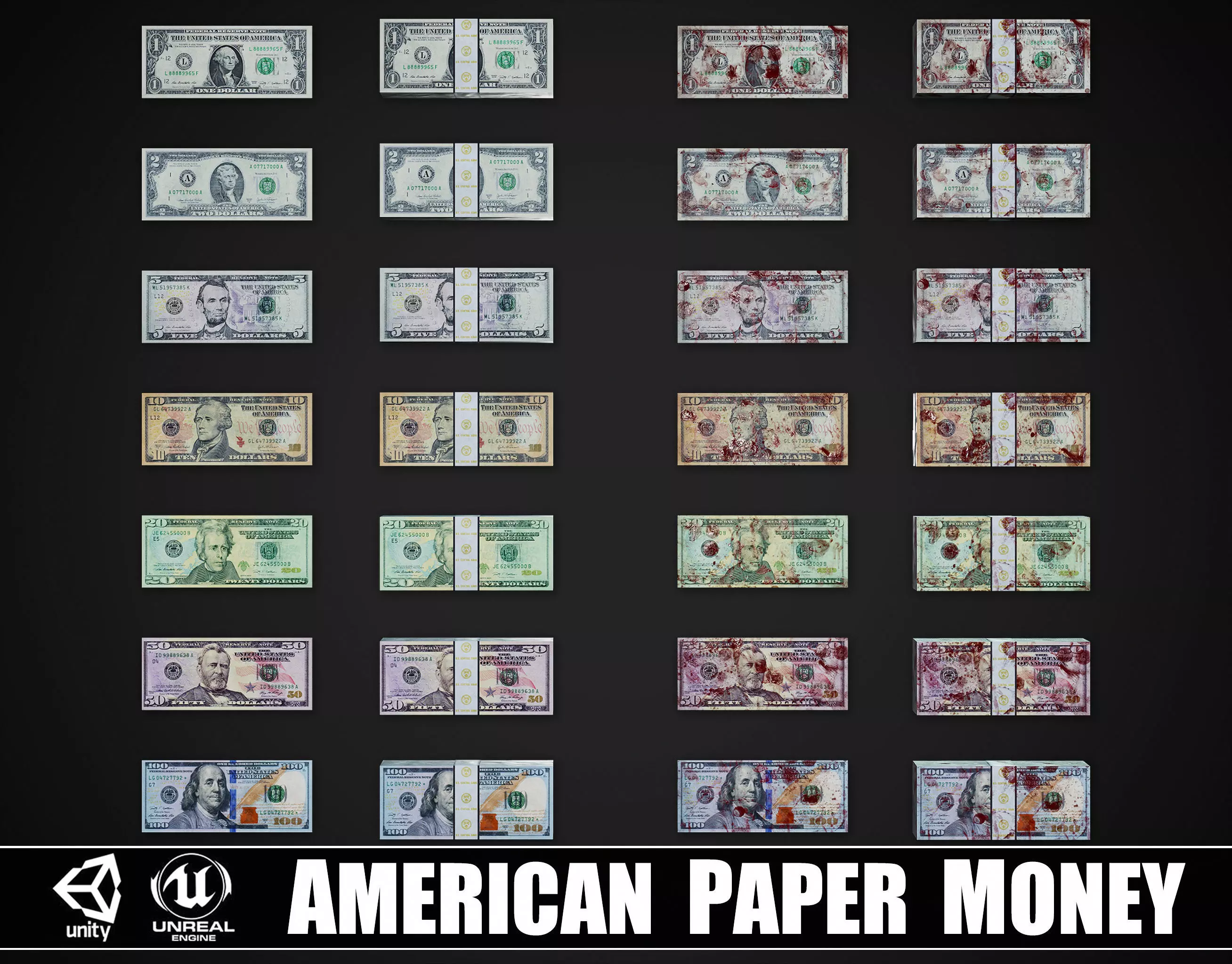 American Paper Money Low-poly 3D model