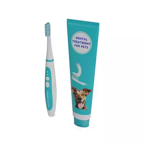 Pet Dental Care Kit: Take care of your pet's oral hygiene with this dental care kit. The kit includes a toothbrush and toothpaste specially formulated for pets. The toothbrush has soft bristles and an ergonomic handle for easy brushing. The packaging includes a label with a graphic of a smiling pet showing off its clean teeth, along with the text Pet Dental Care Kit in a playful font.