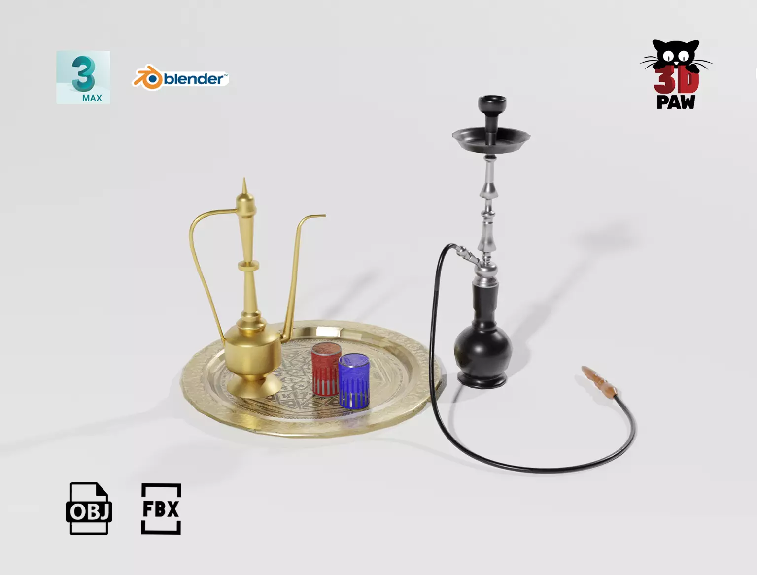 Set of 6 arab objects for teatime scenes .They are ready for games or 3D scenes which require low poly models . They have been created in different 3D Studio Max versions , Blender and also in FBX and OBJ. All the models have their pivot point correctly positioned on the base to be comfortably used in game engines like Unity or Unreal. All models are accurately scaled to represent real-life object's dimensions.