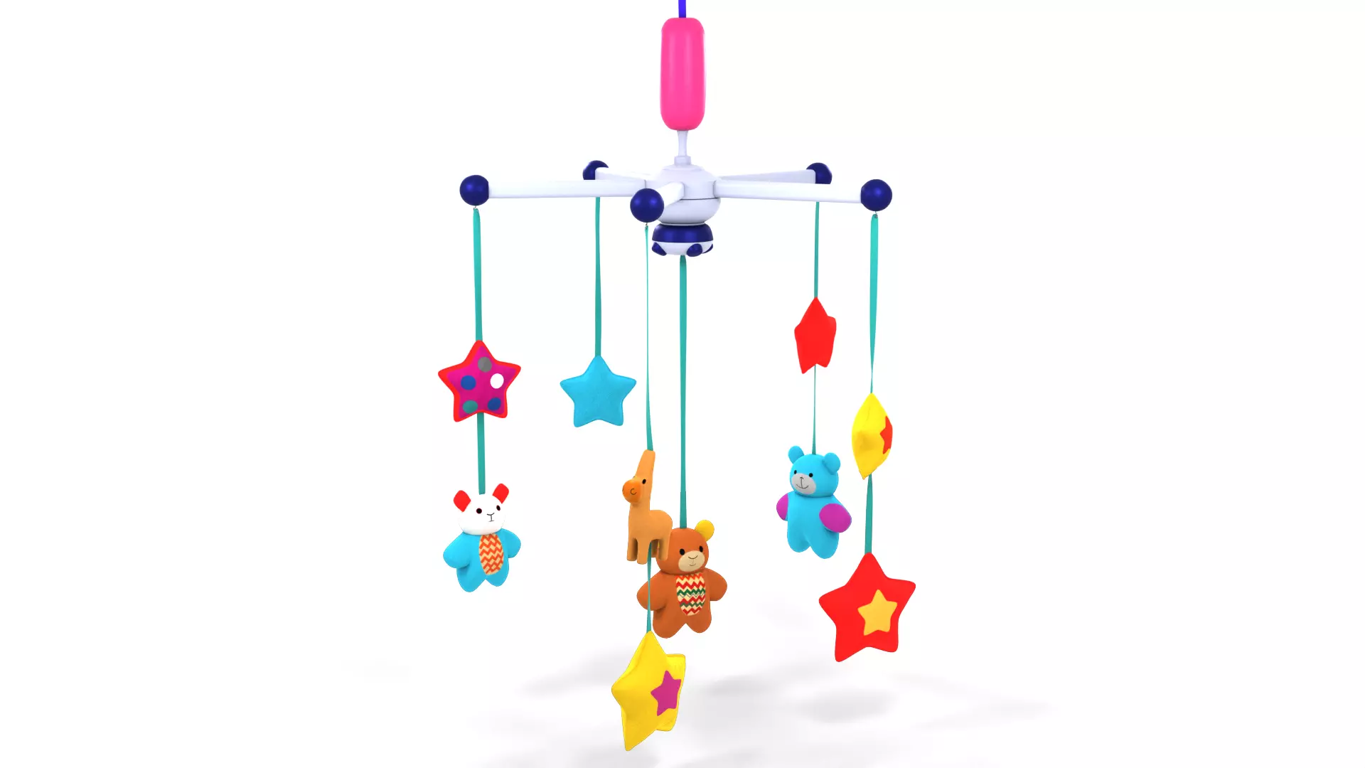 A cute and colorful baby mobile with hanging toys. The mobile is made of soft fabric and features a rotating mechanism that plays a soothing melody.
