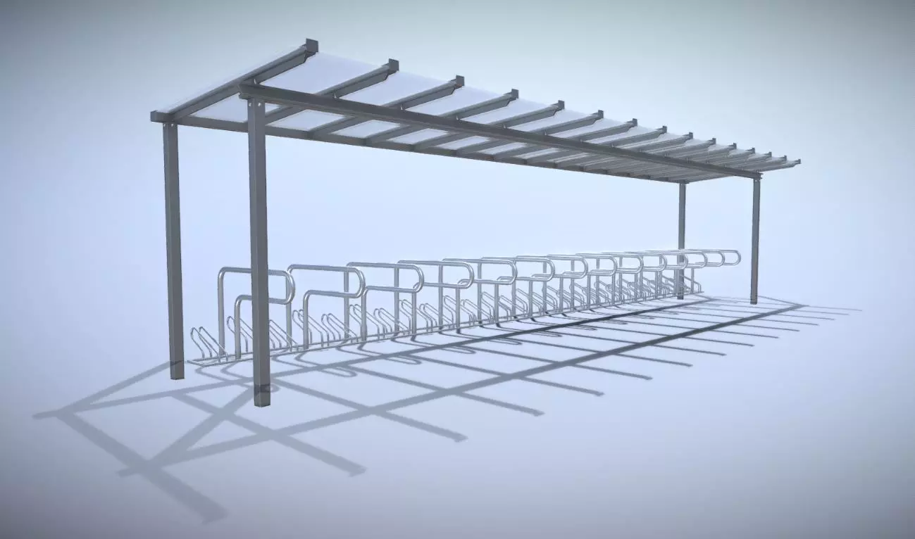Bike stand 1-9 with glass roof 10800mm Low-poly 3D model