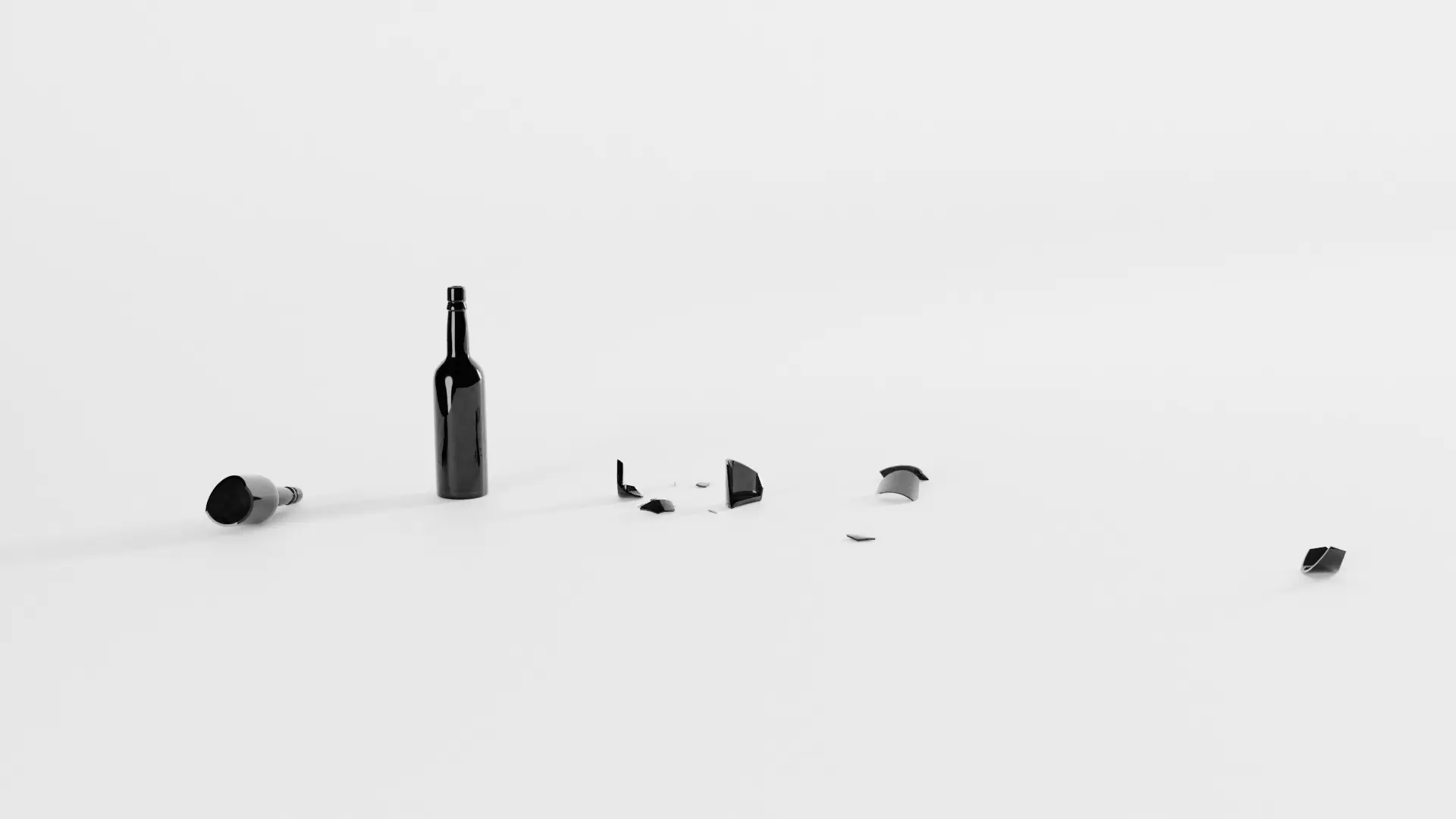 Black Beer Bottle - whole and broken 3D model