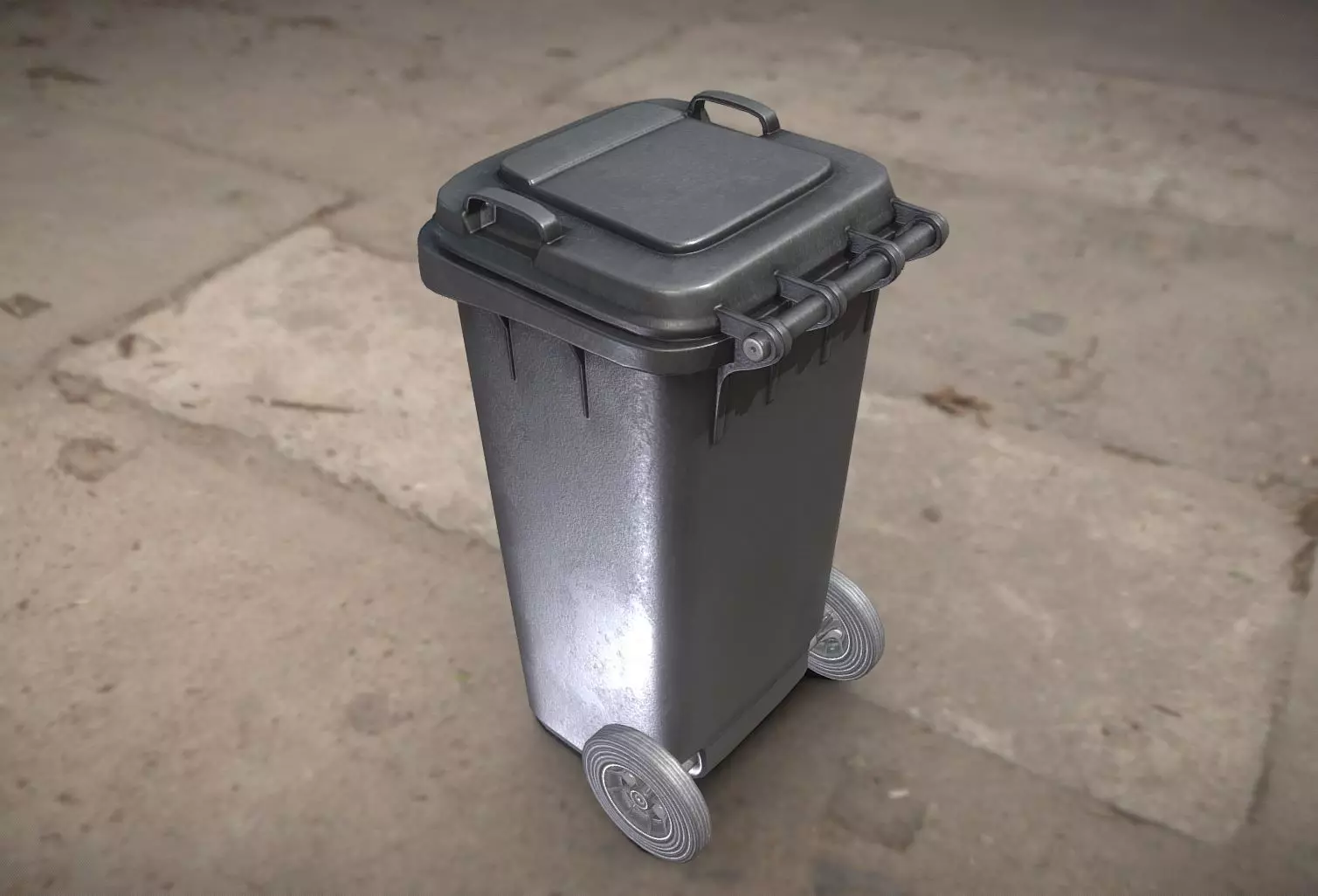 Here is the low-poly and game-ready version of the plastic waste bin in black with a filling capacity of 120 liters.