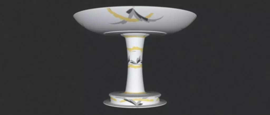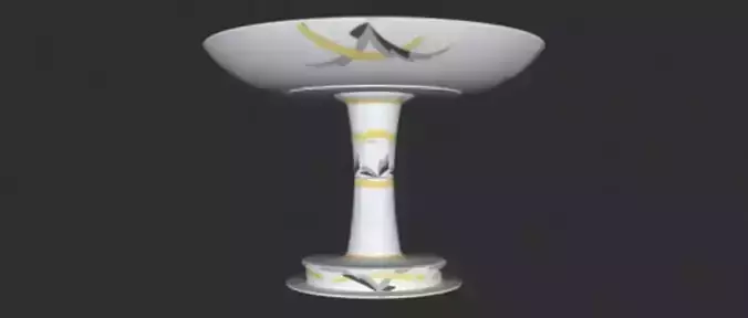 Its a bowl of fruits made of Porcelain. Its a model made of detailed polymesh in 3D. It was designed using the extrude along spline teqnique. So its made through spline modeling. Its dimensions are 23.3 cm by 23.3 cm in height and depth. It has a curved circular symmetrical form and shape.