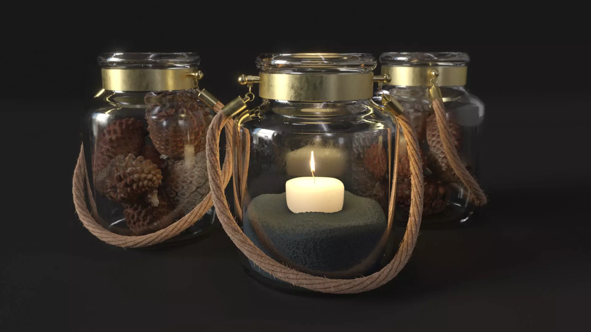*Individual Polycount *• Candle jar Poly : 13.808 Verts: 12.014• Pinecone jar Poly : 32.62 Verts: 20.473