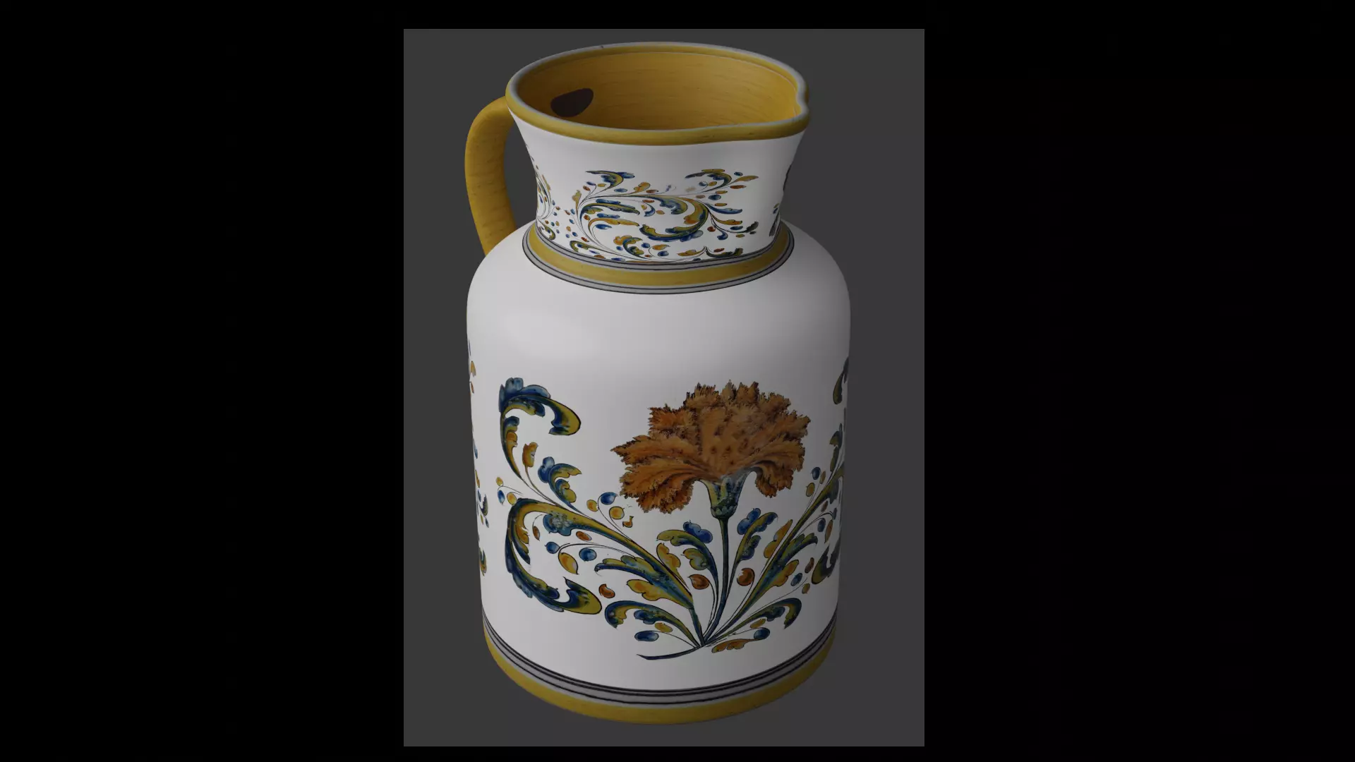 Ceramic vase with floral motifs, 47 cm high and 30 cm in diameter at its base.Modeled in Blender 2.92Unwrapped UV