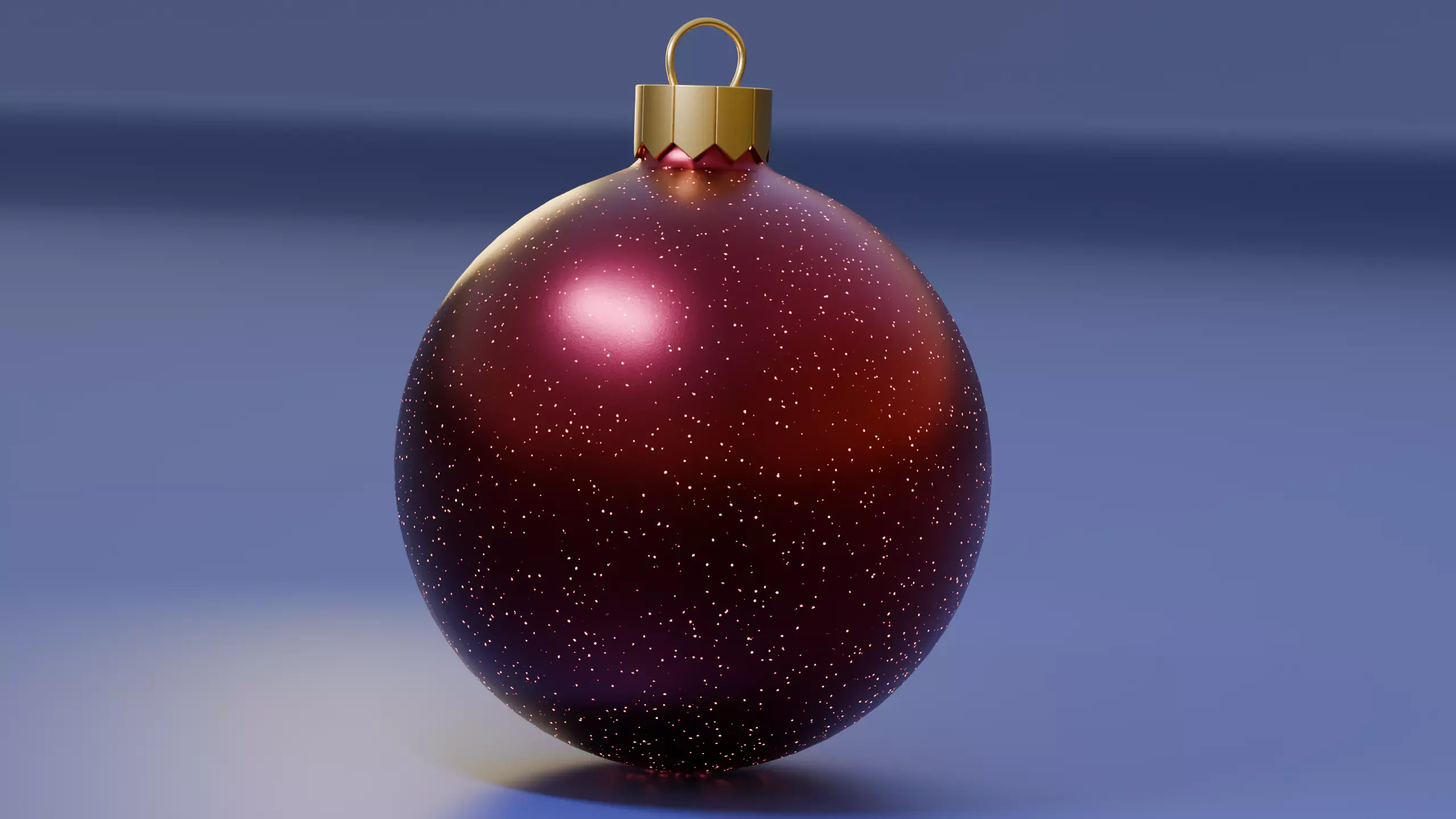This high-quality model features a smooth reflective red glass surface with subtle glitter details and a gold metal cap for hanging. Perfect for Christmas tree setups, festive room renders, or seasonal 3D projects.