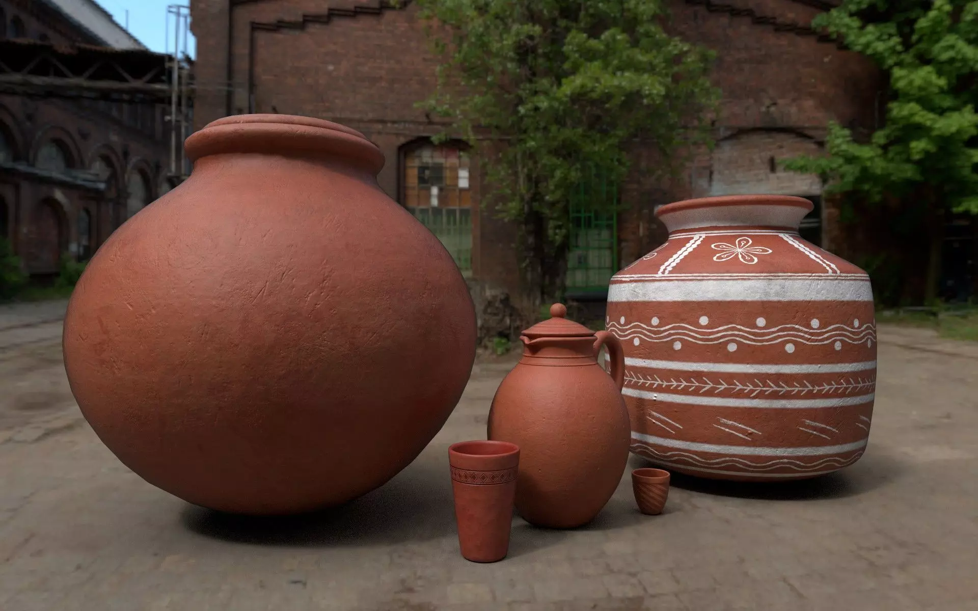 High poly - Indian clay water pots - Manually modeled and textured, so both geometry and UVs are clean and well optimized. This model is made in blender software ( JUG , GLASS , TEA CUP , WATER POT_01 , WATER POT_02)