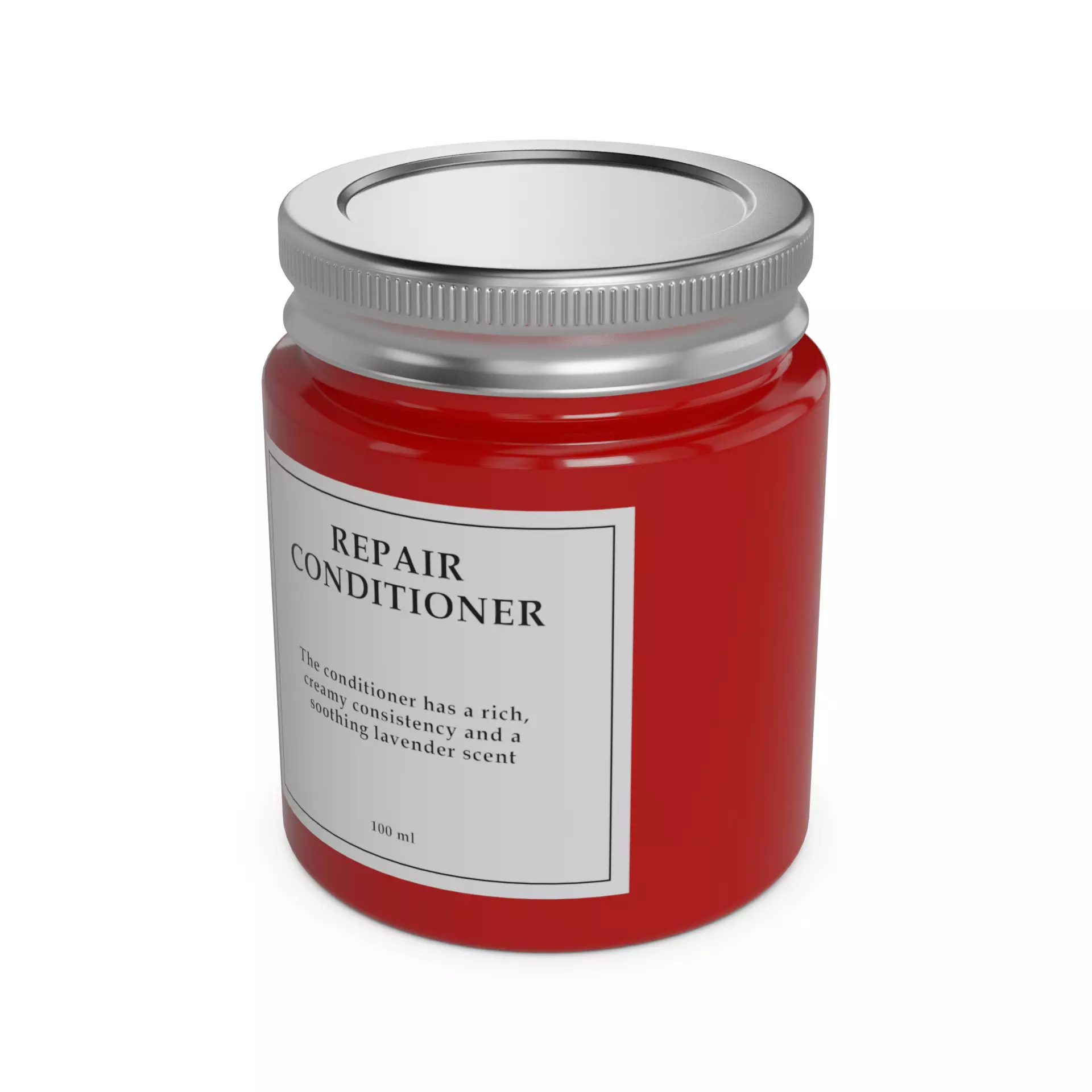 Intensive Repair Conditioner: Revive damaged hair with this intensive repair conditioner. It is housed in a sturdy, red jar with a screw-on lid. The label showcases a before-and-after image of damaged hair being transformed and includes text that highlights its repairing properties. The conditioner has a rich, creamy consistency and a soothing lavender scent. It deeply nourishes and repairs your hair, leaving it stronger and healthier.