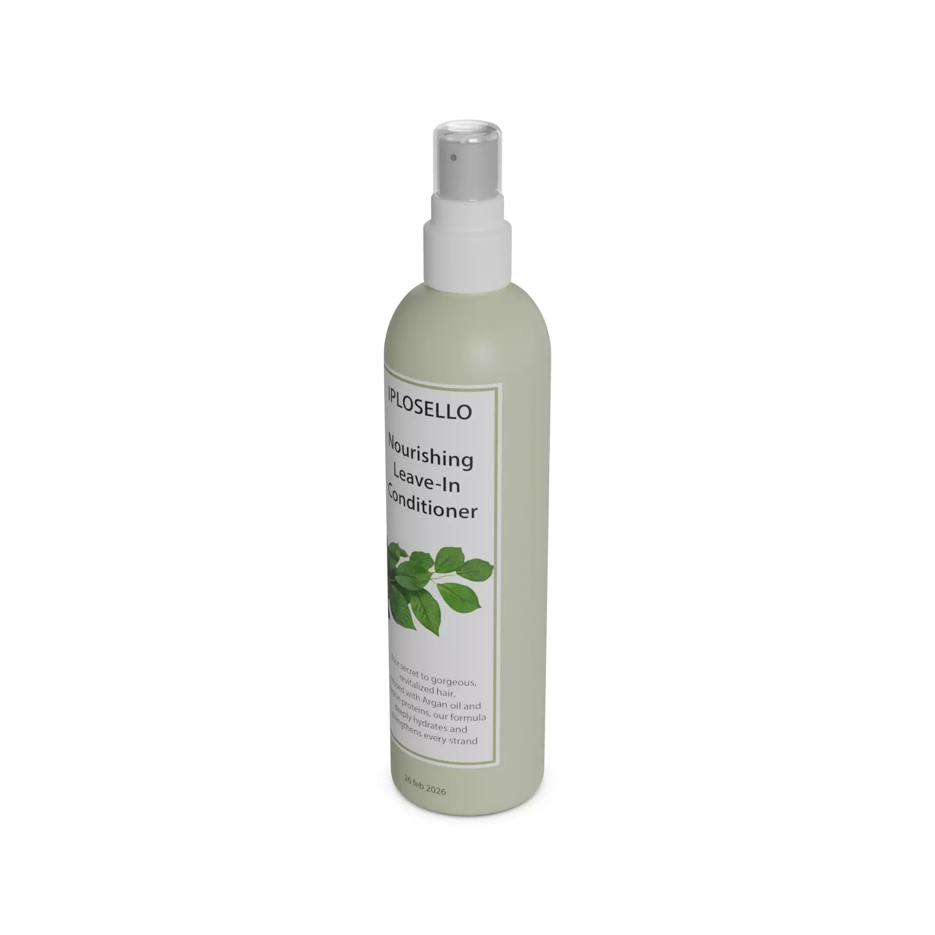 Nourishing Leave-In Conditioner: This nourishing leave-in conditioner is packaged in a convenient spray bottle. The label features a botanical design and text that emphasizes its nourishing properties. The conditioner has a lightweight, mist-like formula and a refreshing fruity scent. It provides instant hydration and detangles your hair, leaving it soft, manageable, and ready to style.