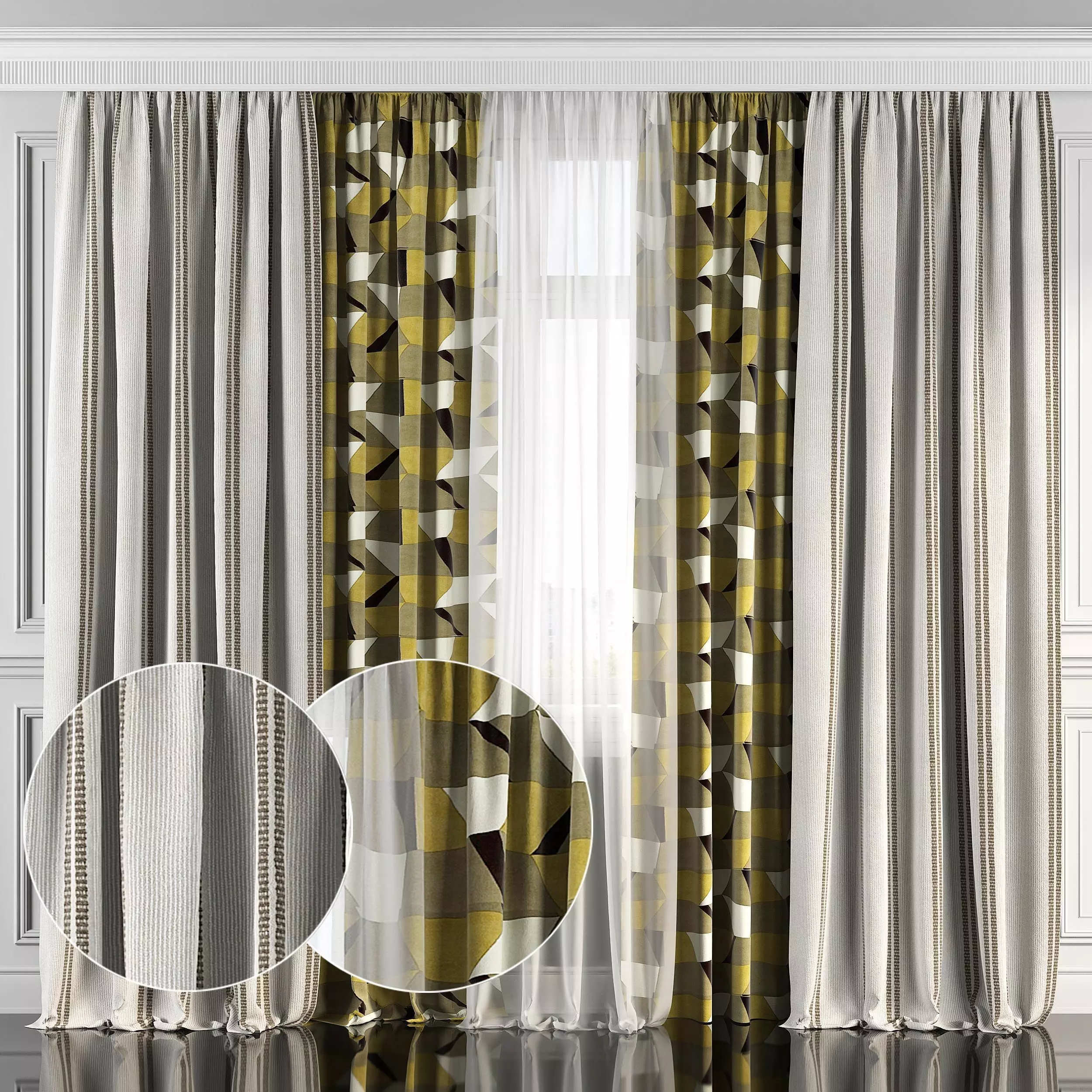 3D model of curtains and window. Curtains are suitable for any interior design of houses, apartments, bedrooms and living rooms.