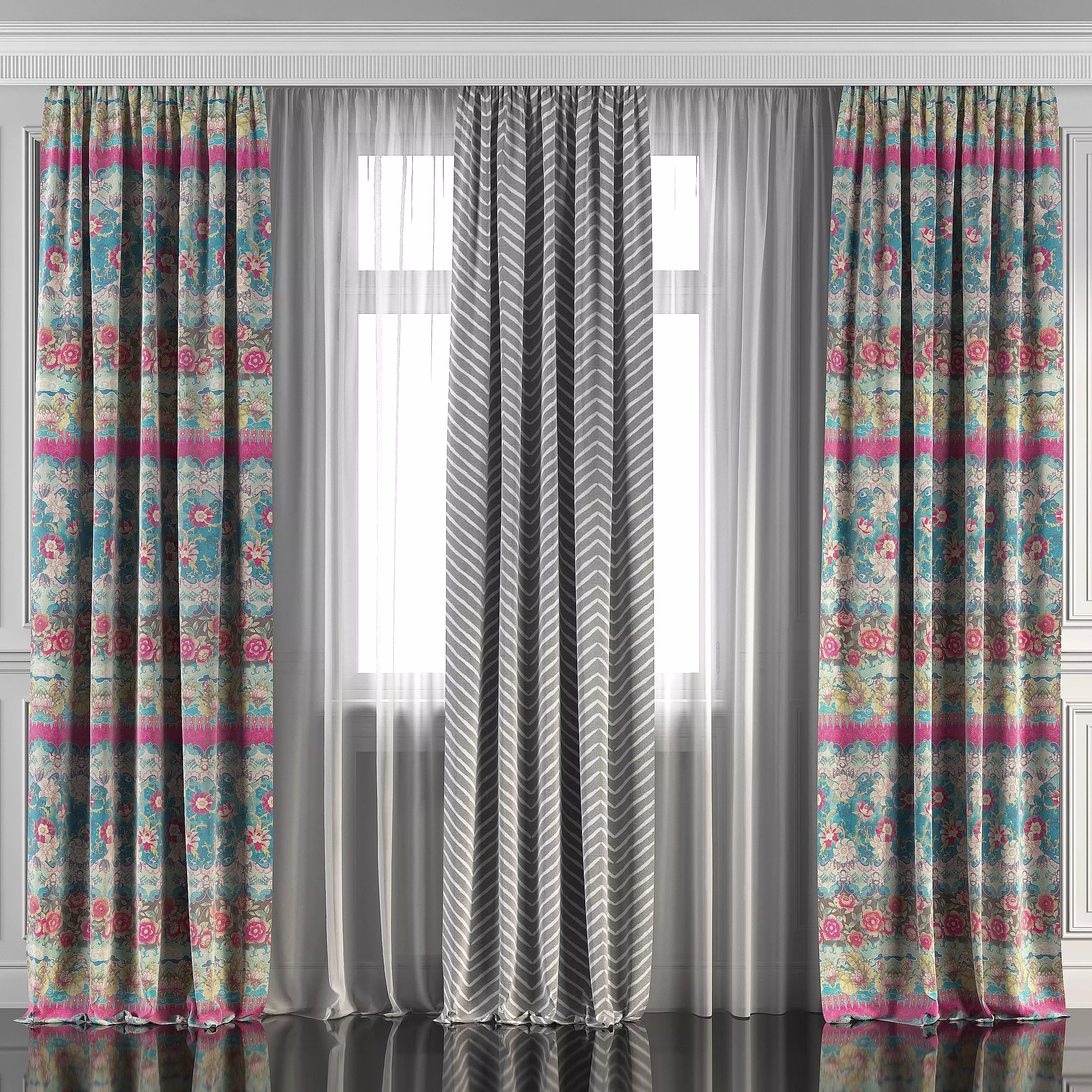 3D model of curtains and window.