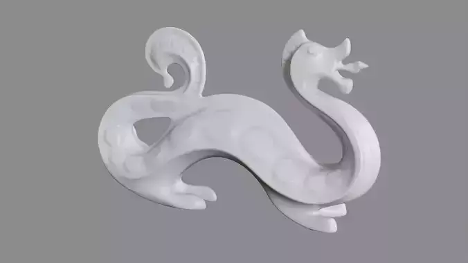 This meticulously crafted 3D model captures the elegant form and mythical essence of a stylized dragon figurine. Inspired by Jonathan Adler's iconic designs, the model features a sleek, elongated body with flowing lines and intricate details. The dragon's pose exudes grace and power, making it a captivating centerpiece for any space.