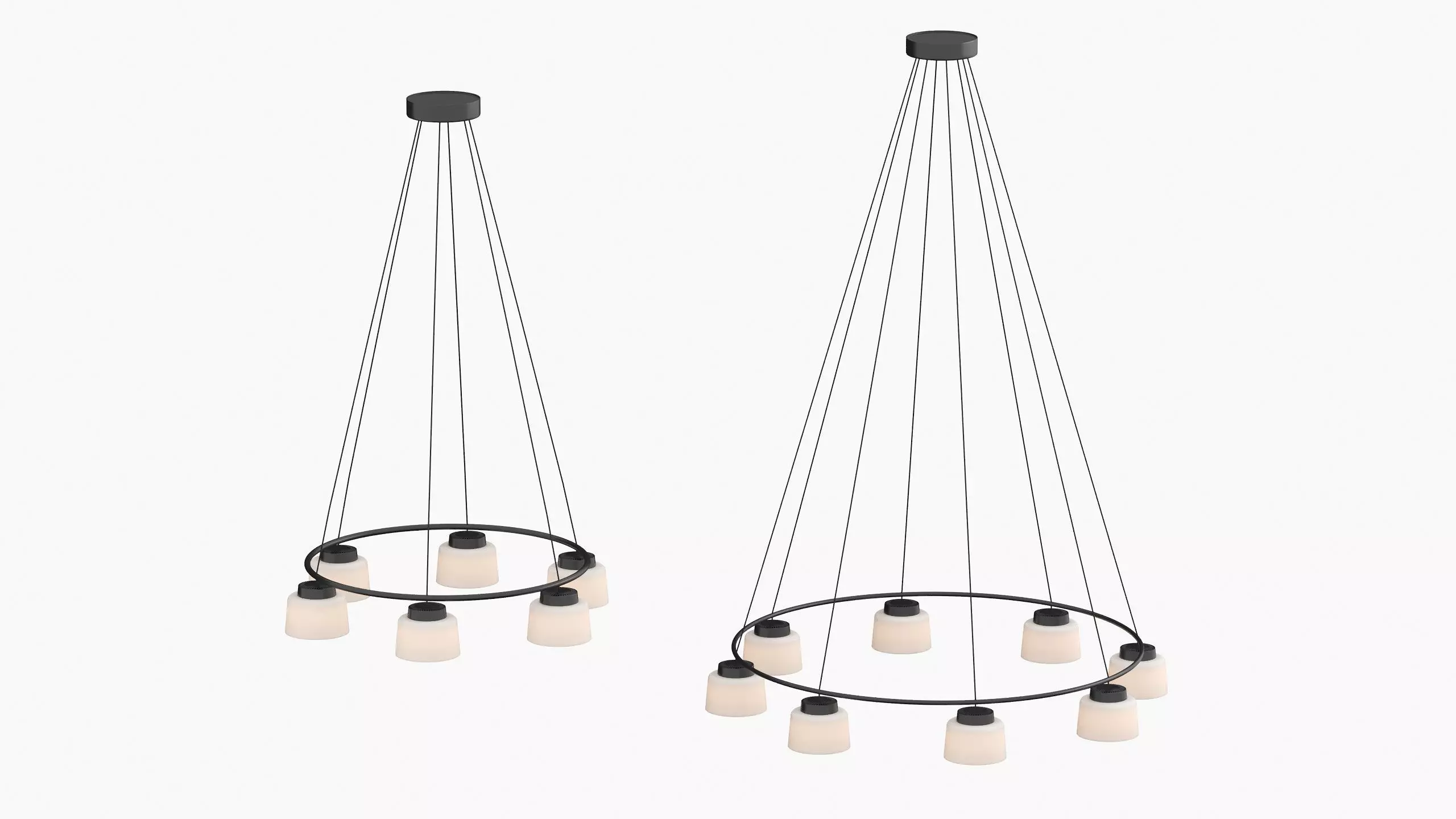 A modular, circular pendant light designed in collaboration with Swedish designer Jens Fager. Split Ring offers a clean, symmetrical framework ideal for illuminating collaborative spaces like dining areas, workstations, and hospitality environments. Available in 6 or 8 module configurations, the ring design ensures even light distribution across surfaces while maintaining the refined design language that defines the Split Series.
