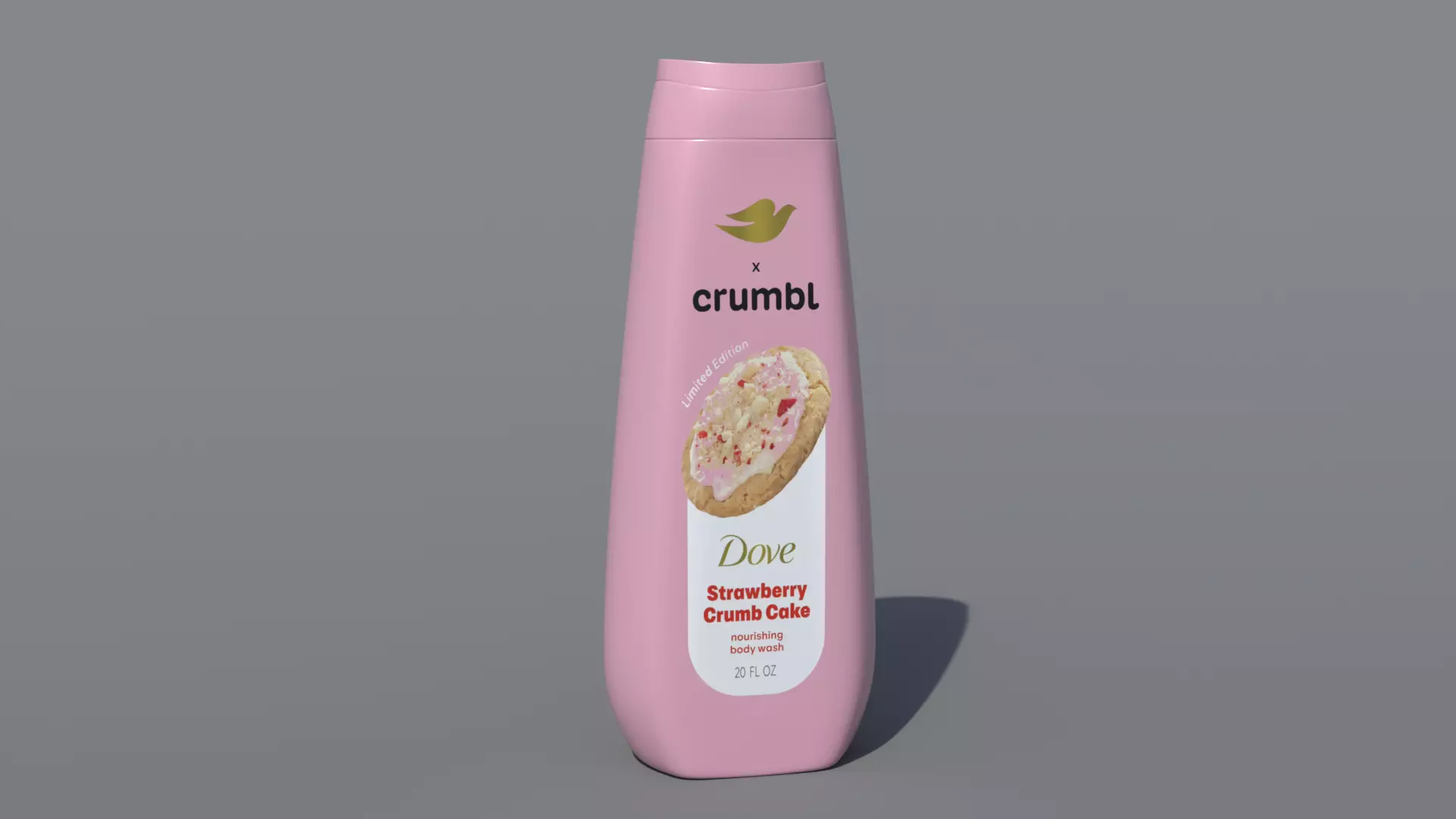 This is a 3d model of Dove strawberry crumb cake body wash bottle . The 3d bottle was modeled and prepared for realistic renderings, background, general CG visualization etc presented as a mesh with quads only.