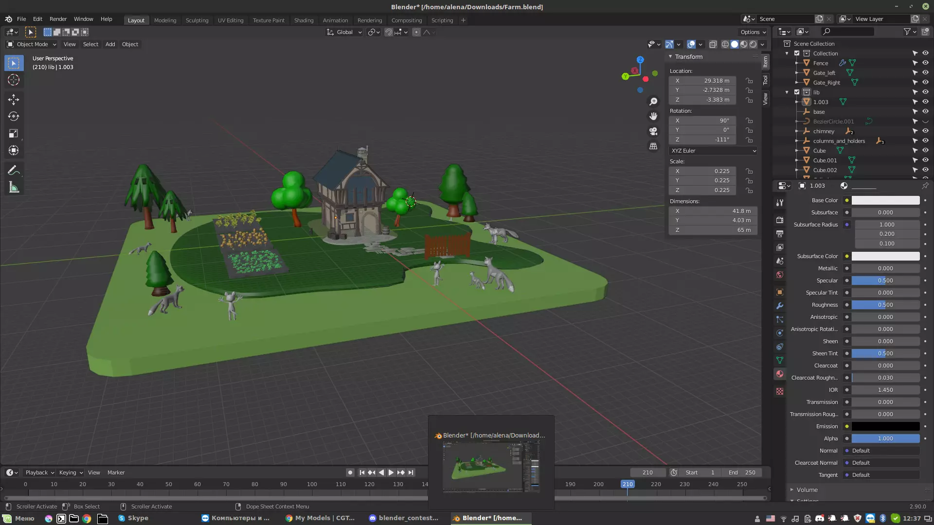 The model has material settings that define how surfaces look (color, shine, transparency, etc.).