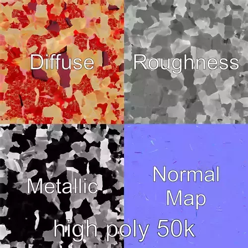 The model's textures are PBR, Diffuse, NormalMap, and reflection/roughness/metallic, which are suitable for any modern rendering engine. All models are accurately unwrapped and have no overlapping UVs. All textures are 4096*4096 in size.