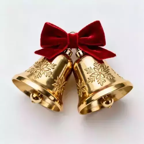 Tags Christmas Bells, Jingle Bells, Holiday Ornament, Gold, Velvet Ribbon, Snowflake, Winter Decoration, Festive, 3D Model