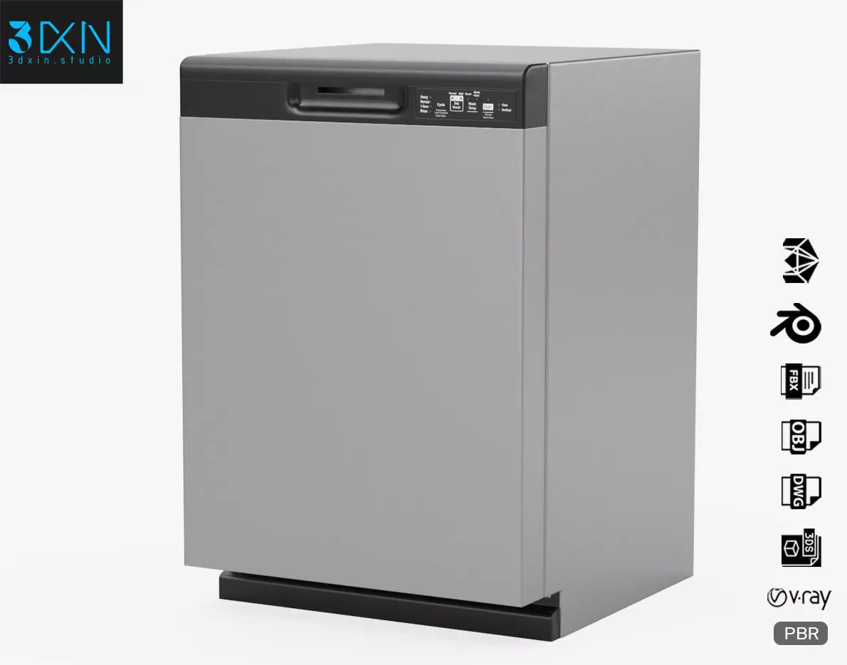 GE Dishwasher with Front Controls GDF535PSRSS is a high quality, photo realistic 3d model that will enhance detail and realism to any of your rendering projects. The model has a fully textured, detailed design that allows for close-up renders, and was modeled in 3ds Max 2018 also has 3ds Max 2015 version and rendered with V-Ray. Renders have no post-processing.