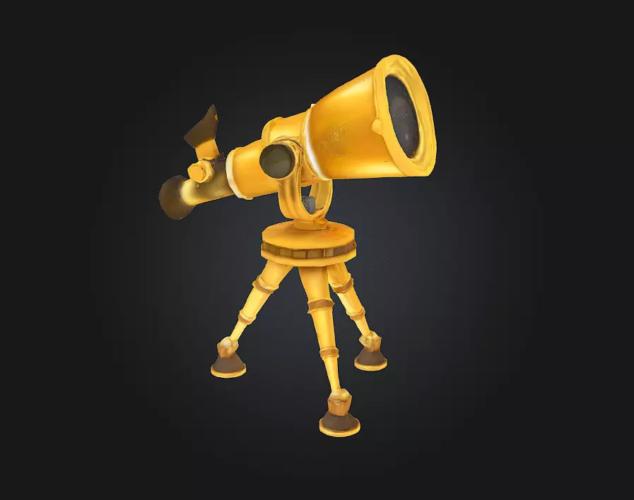 The Golden Telescope Icon is a beautifully crafted, minimalist 3D model designed to symbolize exploration, curiosity, and the vastness of the universe. Its sleek design, enhanced by golden accents, makes it a perfect choice for apps, websites, or any design that aims to evoke a sense of adventure and discovery.