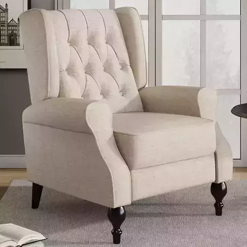 Jocisland Wingback Recliner Chair for Living Room - Modern Push Back Recliner Chair with Widened Armrest, Upholstered Accent Lounge Arm Chair, Tufted Single Sofa Reading Chair, Light Beige