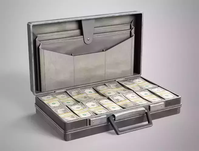Leather Briefcase With Money - Vintage Suitcase With Dollars AAA Low-poly 3D model