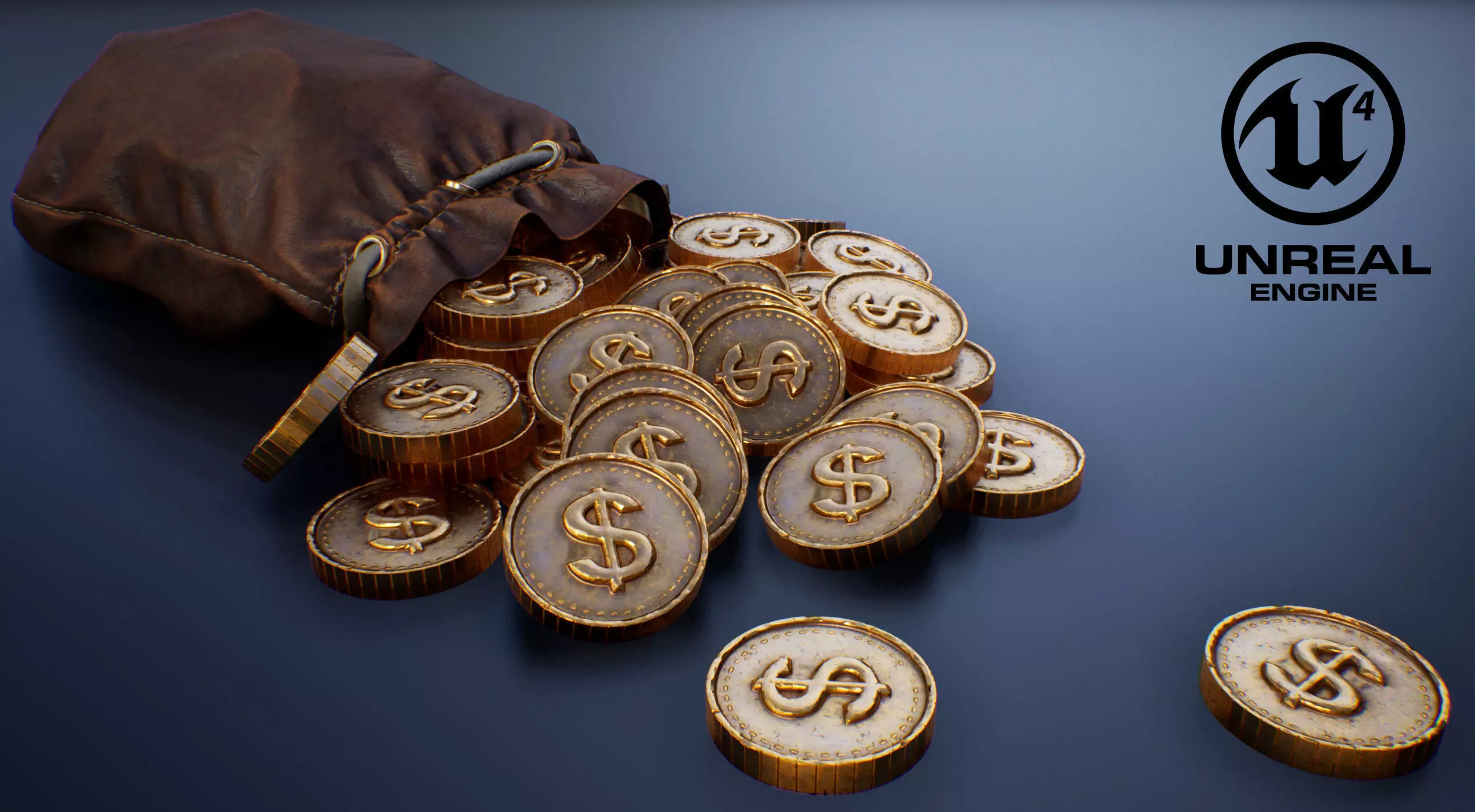 Leather Purse with Gold Coins - PBR Game-Ready Low-poly 3D model