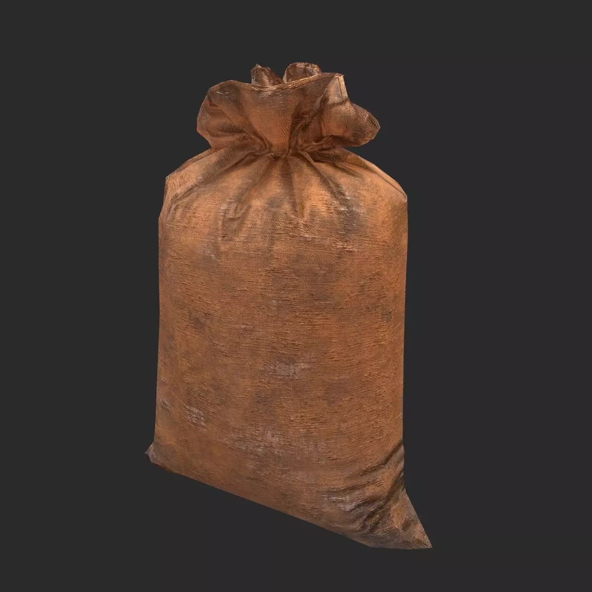 Low poly Sack 3D model with PBR 4k textures: Base color, Metalic, Roughness, Normal and AO 1312 tris , 658 vertices, 784 polysAll textures are in zipped file named 'Texture'. You will find them seperately. Rendered in Marmoset