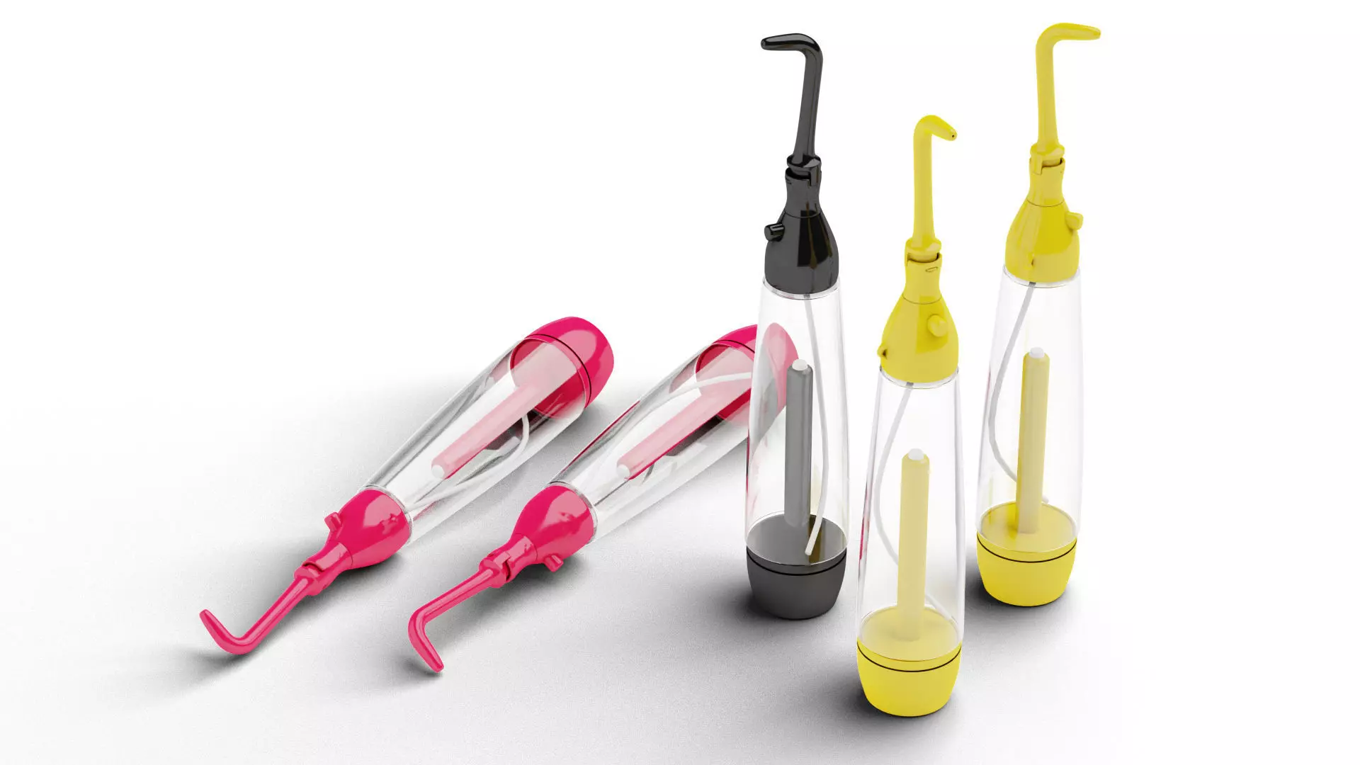 This is a detailed 3D model of a life-scale manual dental water flosser used for oral hygiene. The perfect addition for your toilet or dental clinic archviz scene!