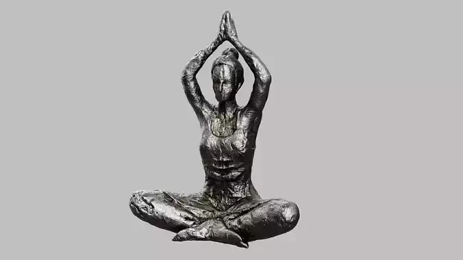 This is a 3D model of a seated figurine in the Miiral Deco style, depicting a figure in a meditative pose. The model features quad topology, is fully UVW mapped, and includes 8K texture maps. It's suitable for interior visualization and decorative purposes. Multiple file formats are provided: .max, .obj, .fbx, .abc, and more.
