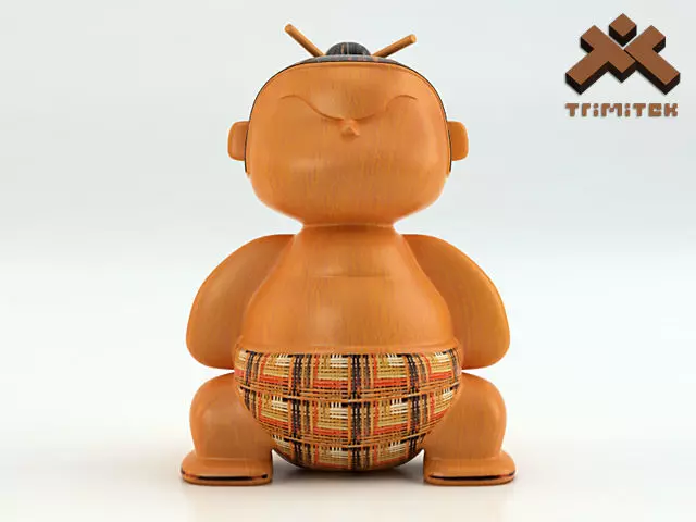 Realistic 3D model of wooden sumo fighter toy called Mimushi.