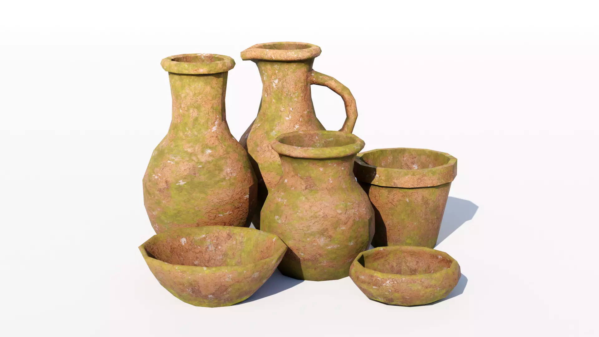 Mossy Clay Containers Low-Poly 3d models Low-poly 3D model