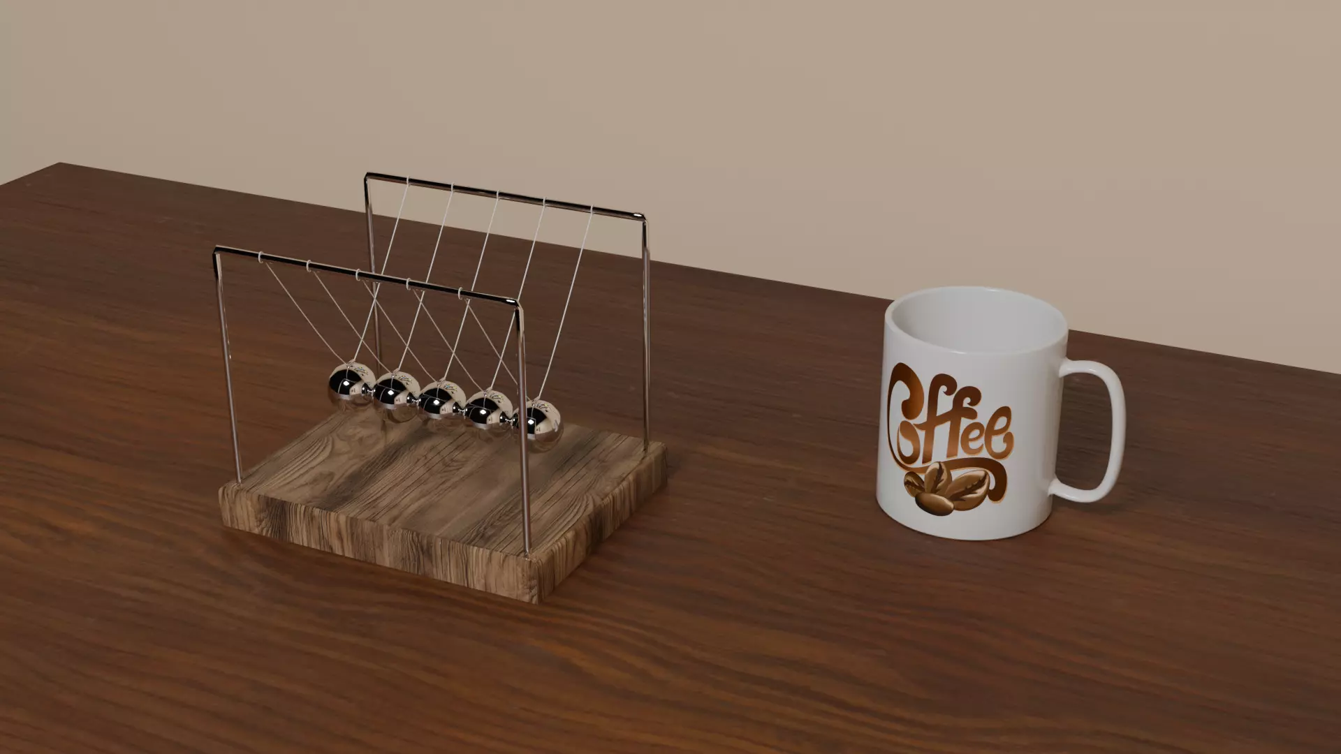 Perfect for office scenes, study environments, or educational visualizations, this Newton’s Cradle adds a sense of sophistication, balance, and motion to any render. Its minimalist design and reflective materials make it a versatile accent for both modern and classic interiors, whether used as a decorative prop or a centerpiece of a detailed desk setup.