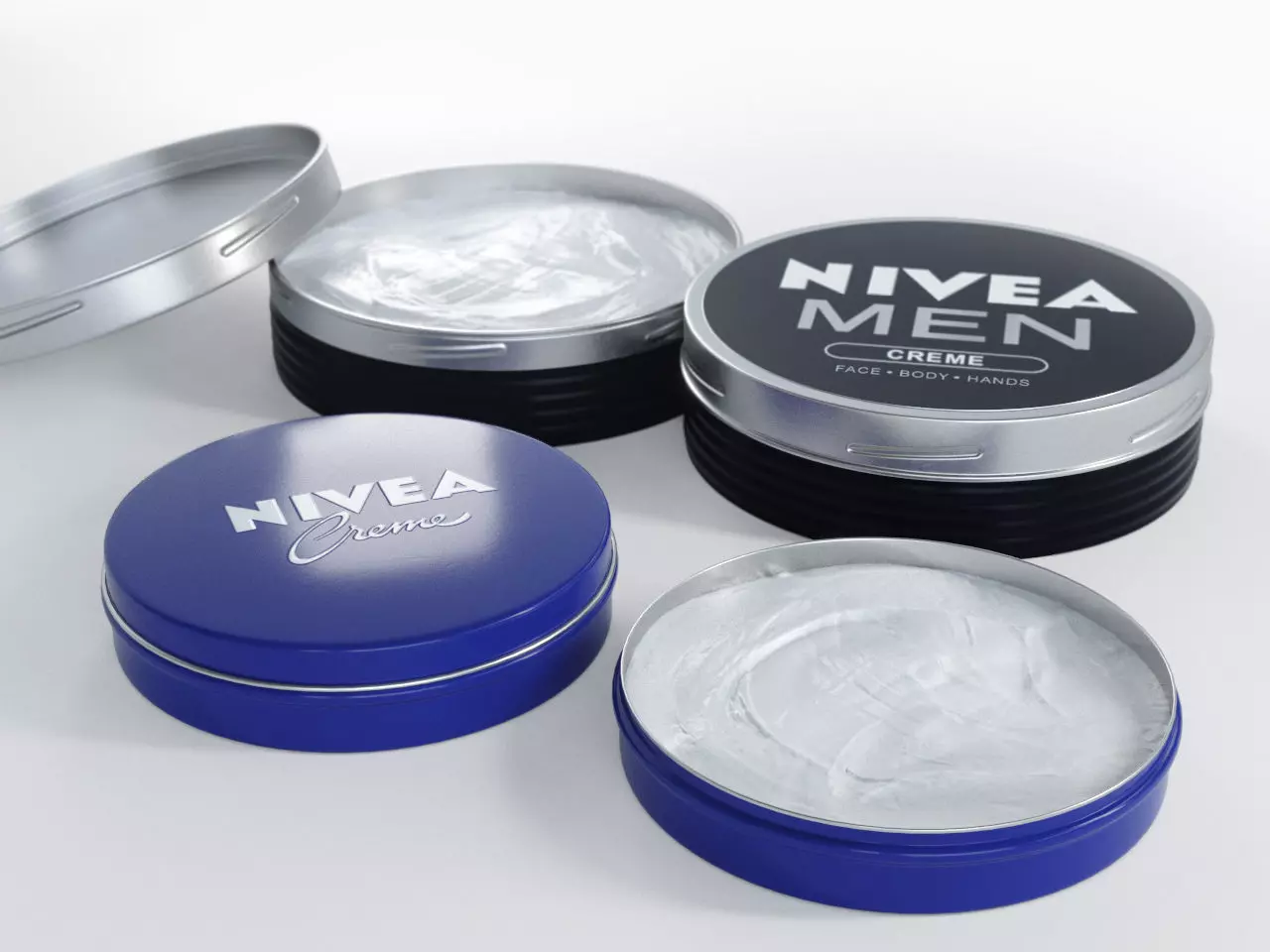 High detailed models of Nivea Creme in different versions.Nivea and Nivea for Men, both open and closed.