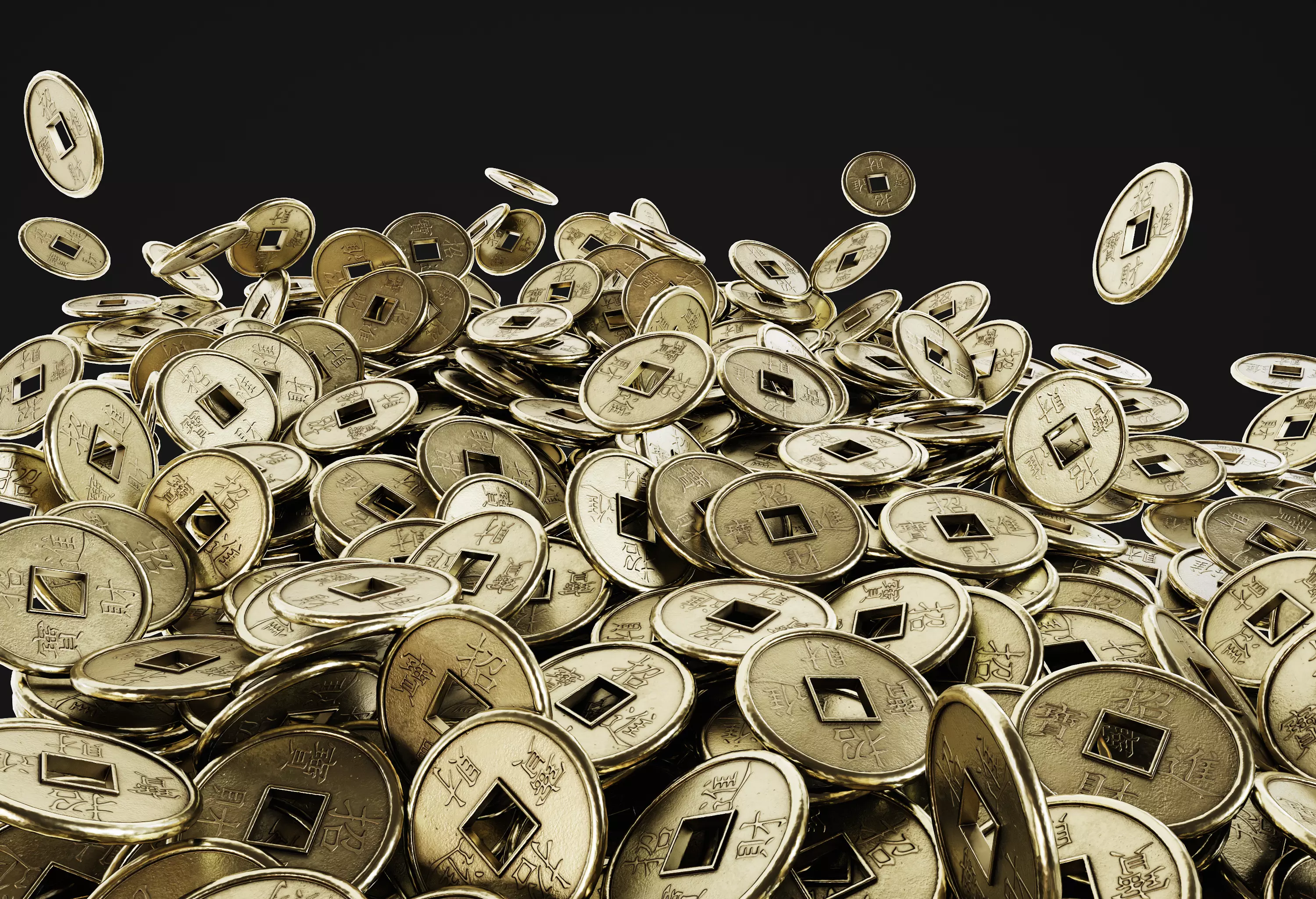 Old Chinese Coin Low-poly 3D model