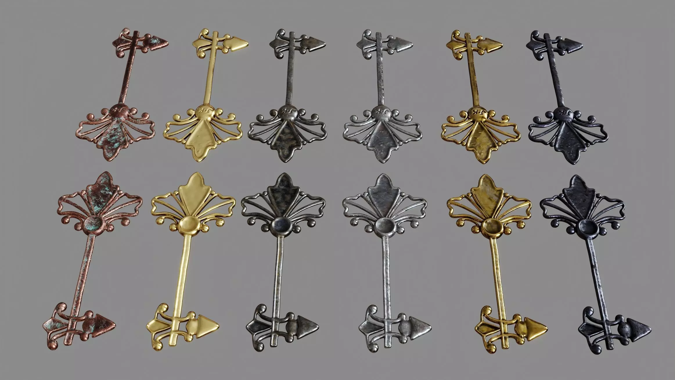 • 6 sets of PBR textures to obtain 6 different shaders as in the preview renders.(6x base color, roughness, metalness, height, normal)