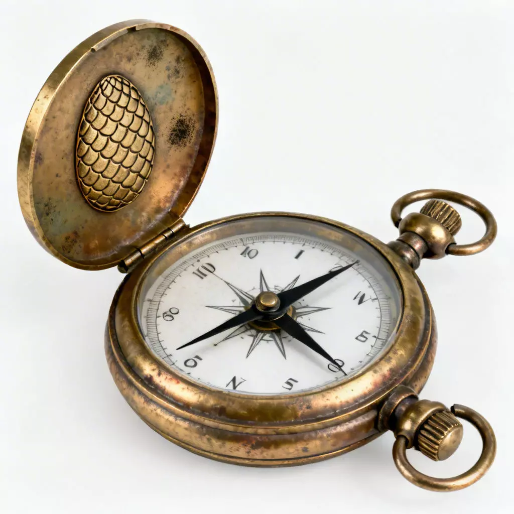 Weathered Brass and Aged Metallic FinishThe compass features a primary finish of weathered brass, meticulously modeled with realistic surface oxidation, dark tarnish spots, and localized metallic wear. This professional and grounded appearance emphasizes the model's antique aesthetic while providing a clear visual story of long-term field use in a variety of environmental conditions.