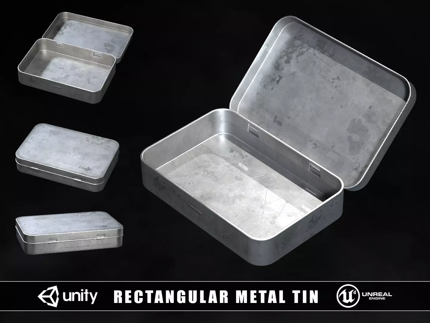 Rectangular Metal Tin 3D model. This model comes with the tin and 1 texture set. Modeled in Maya and textured with Substance Painter and Photoshop. The model is built to scale and is UV unwrapped with 4k textures. Includes 3D model and textures!