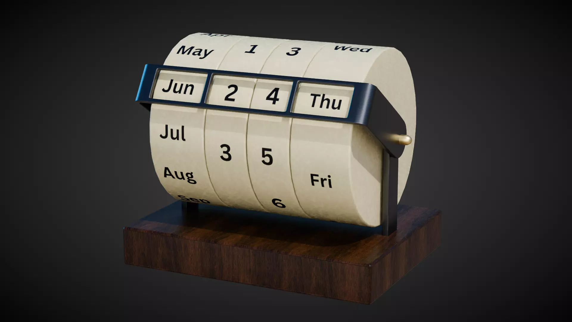 Rotating Wheel Retro Calendar Low-poly 3D model