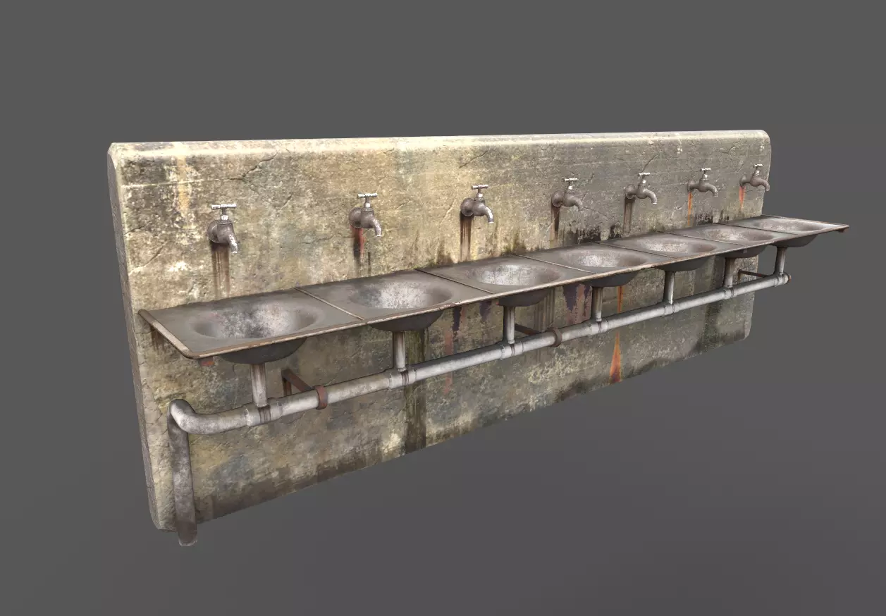 Model of Abandoned Multiple Drinking Water Taps and Sinks .Model is very realistic. Model has 4 PBR material.Maps are diffuse-specular-glossiness-height and normal. Model's textures has two sizes; 4096x4096-2048x2048. All maps are PNG formats and unwrapped-non-overlapping.