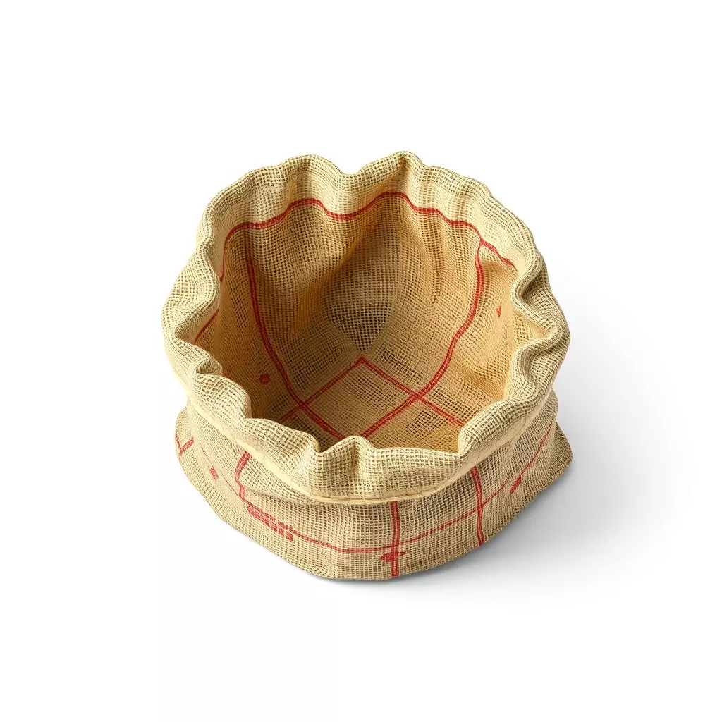 This is a highly detailed 3D model of an empty, open burlap sack, meticulously crafted to replicate the natural coarse texture of jute fabric. The model features intricate fabric folds around the opening, creating a realistic and organic silhouette. Inside, a subtle red grid pattern adds a touch of authenticity and character, suggesting its potential use for agricultural goods or general storage. This versatile asset is ideal for a wide range of applications, including enriching game environments for farm, market, medieval, or rustic scenes, as well as post-apocalyptic settings. It also serves perfectly for architectural visualization projects requiring realistic props in storage areas or vintage-themed interiors. Furthermore, it's well-suited for augmented reality (AR) and virtual reality (VR) experiences, digital art compositions, and product visualizations where a realistic texture is crucial. The model is optimized for real-time applications with a balanced polycount and clean topology, ensuring smooth performance across various platforms. It comes fully UV unwrapped with high-quality PBR (Physically Based Rendering) textures, providing a physically accurate representation of the material in diverse lighting conditions. Supported file formats likely include GLB, OBJ, FBX, USD, DAE, ABC, and PLY, offering broad compatibility across different 3D software and game engines. This asset is ready to be dropped into any scene to instantly add realism and depth.