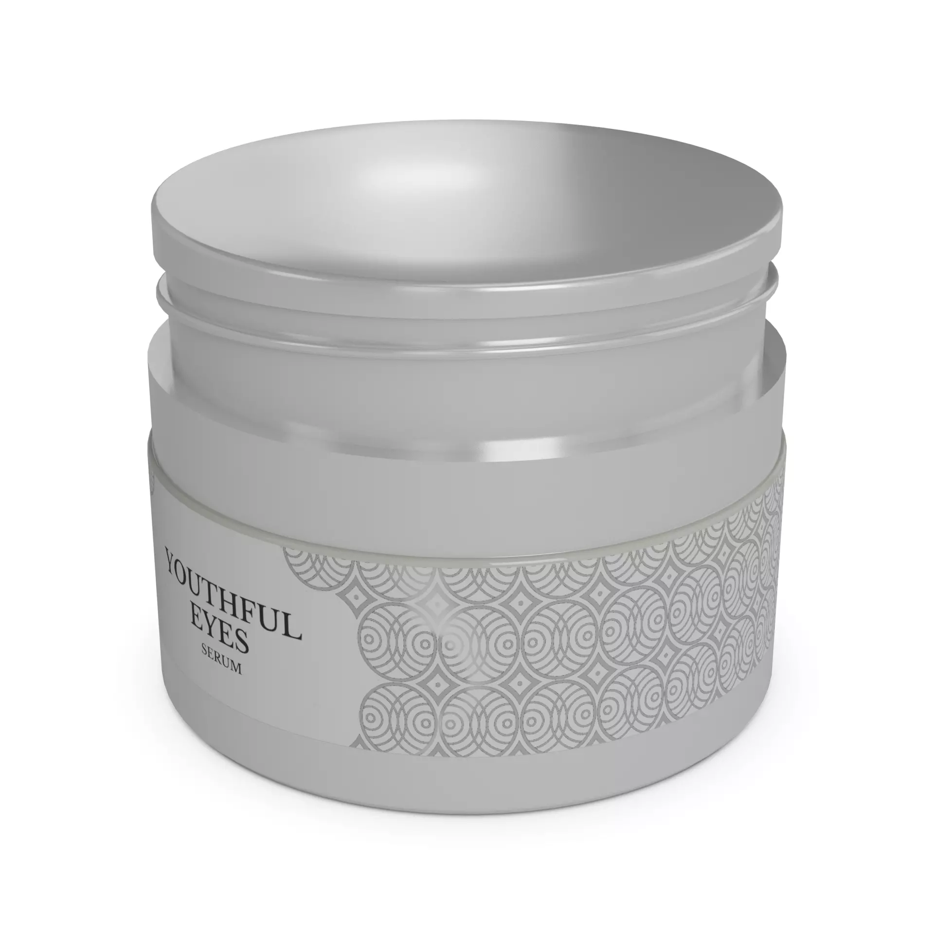 Anti-Wrinkle Eye Cream: Housed in a small, silver jar with a screw-top lid, this anti-wrinkle eye cream is a must-have for a youthful-looking gaze. The jar features a label with a delicate lace pattern and the words Youthful Eyes in elegant, cursive font. The cream has a rich, nourishing texture that deeply hydrates the delicate skin around the eyes, reducing the appearance of wrinkles.