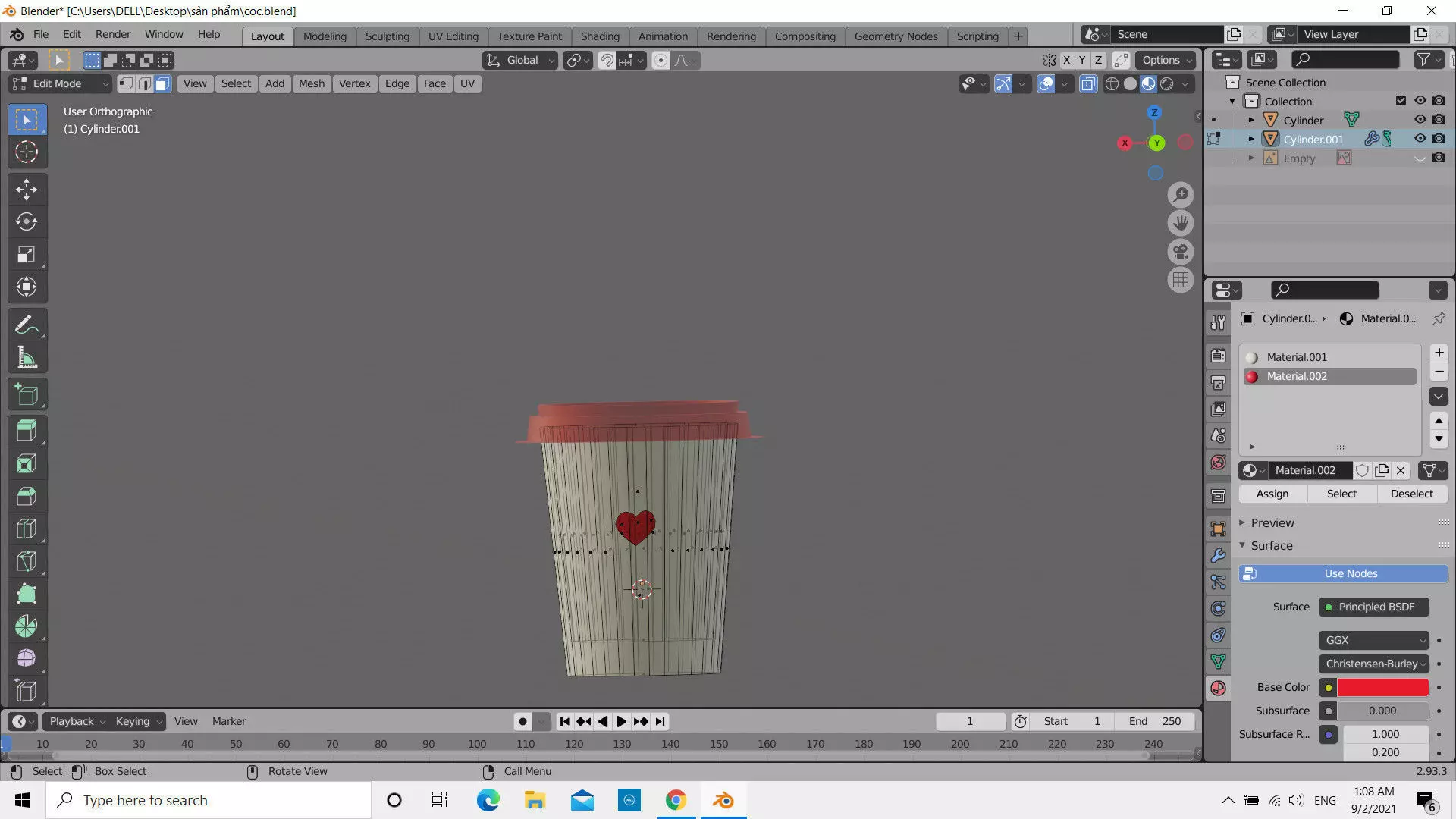 The model has material settings that define how surfaces look (color, shine, transparency, etc.).