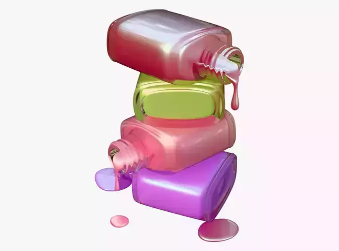 The 3D model 'Spilled Paint Bottles Stack M1' is an unbranded design made for professional projects.