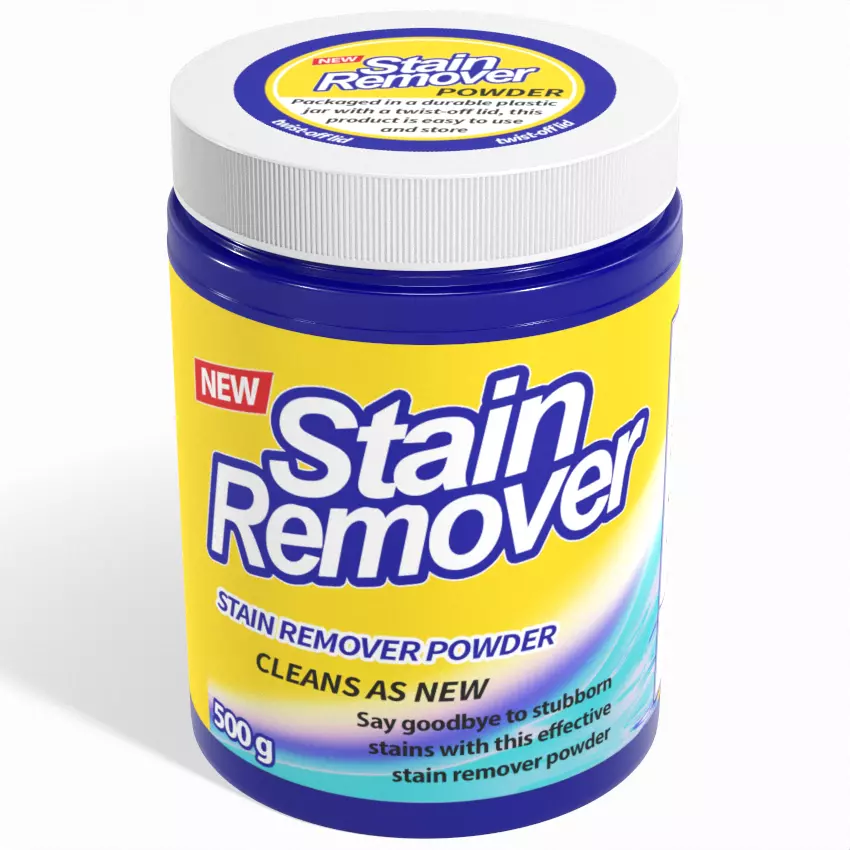 Say goodbye to stubborn stains with this effective stain remover powder. Packaged in a durable plastic jar with a twist-off lid, this product is easy to use and store. The packaging showcases a vibrant yellow color scheme, representing its stain-fighting capabilities. Size: 500g. It was modelled using Blender 3.4 and rendered with Cycles X. Texture files are PBR metallic/ Roughness workflow with Base Color, Roughness, Metallic, Transmission/ Opacity and Normal maps. Depending on the software used any Transparent object uses the Transmission (the texture map values should be inverted in this case) or Opacity texture file. All texture files are in PNG format. It has 1 materials based on 2048 x 2048 PBR textures. The model consists of 1 object. The file formats available are FBX, OBJ, glTF and ofcourse Blender which is the native format. The model is made of polygon meshes with very few triangles.