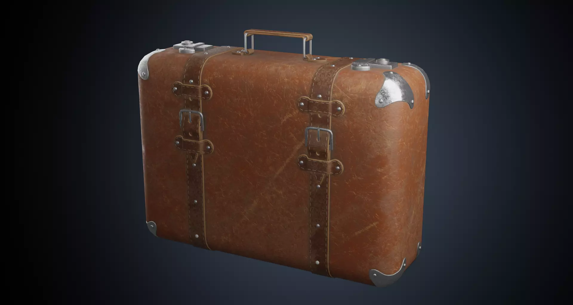 vintage leather suitcase model PBR low-poly. It has sets of 4k pbr map (3840 x 2160) including (Albedo, diffuse, normal, high,metallic, roughness ) in png.
